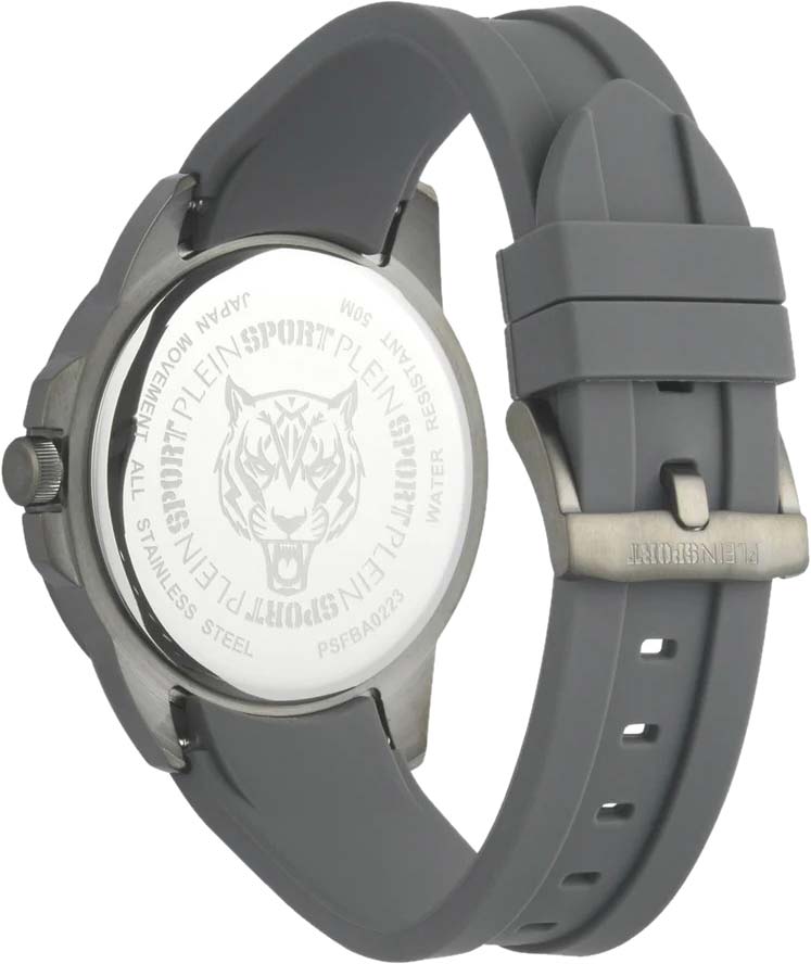 Немецкие мужские кварцевые часы с минеральным стекломМинеральное стеклоМинеральное стекло представляет собой искусственно выращенный минерал кварца. Такое стекло отличается особой устойчивостью к повреждениям и царапинам. Уступает по некоторым качествам сапфировому стеклу. Plein Sport Touchdown PSFBA0223, кварцевый механизм с высокой точностью. Класс водозащиты: 50 метров, позволит защитить корпус от случайных брызг или капель дождя. Корпус выполнен из стали с IP-покрытиемIP-покрытиеМетод ионного напыления. Демонстрирует повышенную устойчивость к истиранию, окислению и химическим веществам. Под воздействием высокого давления и температуры около 1500°C молекулы металла надёжно соединяются с частицами корпуса часов.. Силиконовый ремешок на стандартной застёжке. Минеральное стеклоМинеральное стеклоМинеральное стекло представляет собой искусственно выращенный минерал кварца. Такое стекло отличается особой устойчивостью к повреждениям и царапинам. Уступает по некоторым качествам сапфировому стеклу. устойчивое к мелким механическим повреждениям. Окошко даты находится в положении между 4 и 5 часов.