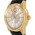 Мужские часы из коллекции «Президент» — это стильный аксессуар, выполненный в желтом золоте и сочетающий в себе элегантность и точность. Модель имеет круглый корпус диаметром 42,9 мм и толщиной 13,7 мм, защищённый сапфировым стекломСапфировое стеклоПрочный и надёжный материал из кристалла сапфира синтетического происхождения, характеризующийся особой твёрдостью и устойчивостью к царапинам и повреждениям., устойчивым к царапинам и механическим повреждениям. Циферблат украшен контуром русской матрешки и инкрустирован кристаллами Swarovski, что придаёт модели особую привлекательность и изысканность. Часы оснащены механизмом с автоподзаводом, обеспечивающим надёжную работу без необходимости частой подзаводки. Задняя крышка с чеканкой Герба России подчёркивает национальную принадлежность и уникальность модели. Кожаный ремешок шириной 20 мм дополнен классической застёжкой, обеспечивая комфорт и элегантный образ. Часы водонепроницаемы до 30 метров (), что позволяет использовать их в повседневных условиях — при мытье рук или под лёгким дождём. Эти часы станут универсальным аксессуаром для тех, кто ценит сочетание стиля, качества и символики — идеальный выбор для уверенных в себе мужчин, следящих за своим имиджем и предпочитающих выделяться.