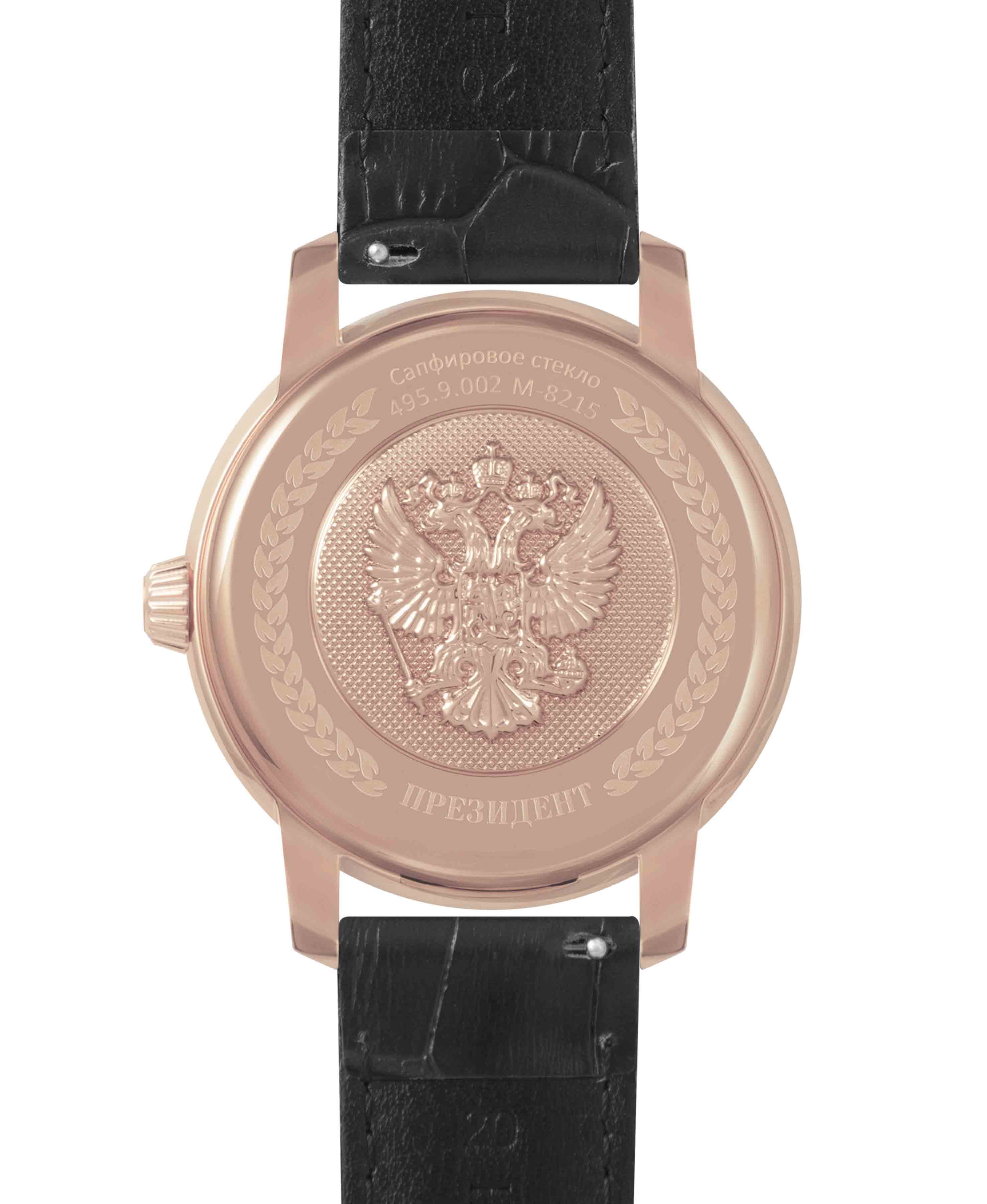 Мужские механические часы с автоподзаводом из коллекции Президент — это сочетание статусного дизайна и надёжного механизма. Корпус круглой формы выполнен в цвете розовое золото с PVD-покрытиемPVDУльтратонкое покрытие наносится в технике вакуумного напыления, сочетает в себе нитрид титана особой прочности со слоем золота или оксида хрома. Несёт в себе декоративную или защитную функцию. и защищён сапфировым стекломСапфировое стеклоПрочный и надёжный материал из кристалла сапфира синтетического происхождения, характеризующийся особой твёрдостью и устойчивостью к царапинам и повреждениям.. Циферблат украшен чеканкой Герба на задней крышке, контуром русской матрешки и инкрустацией кристаллами Swarovski, придающими модели уникальный вид. Часы оснащены кожаным ремешком, обеспечивающим комфорт при ношении. Механизм — механический с автоподзаводом, гарантирующий точное отсчёт времени. Водонепроницаемость 30 м позволяет использовать часы в повседневных условиях, защищая от случайных брызг и капель дождя. Комплектация включает подарочный футляр, паспорт с гарантийным талоном и фирменный пакет. Гарантия — 24 месяца.