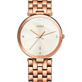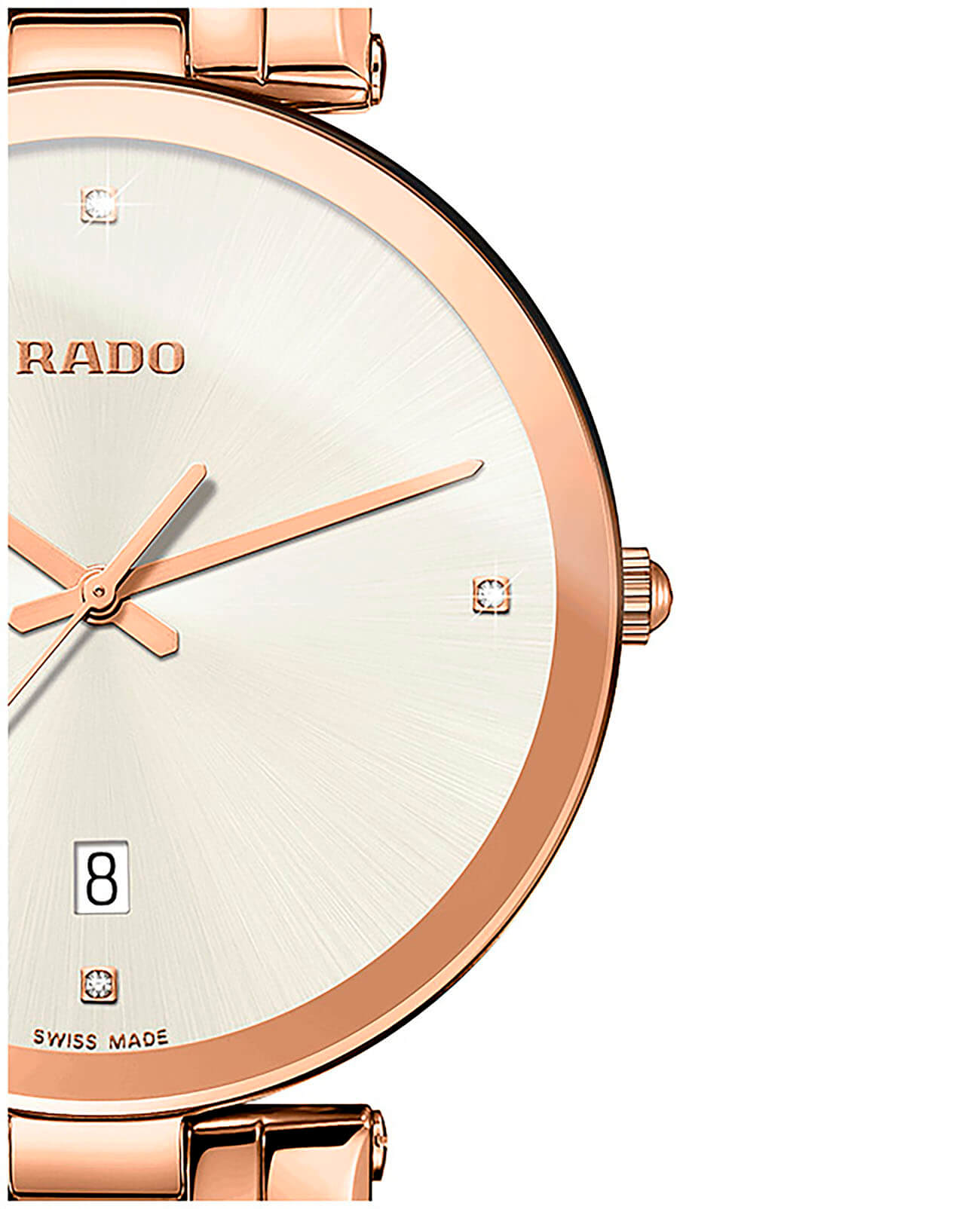 Премиальный аксессуар точно пройдёт испытание временем, сохраняя актуальность в любой ситуации. Минималистичный светлый циферблат инкрустирован 4 роскошными бриллиантами в 0,011 карат. Корпус и браслет изготовлены из нержавеющей стали 316L, дополнительно защищённой PVD-покрытиемPVDУльтратонкое покрытие наносится в технике вакуумного напыления, сочетает в себе нитрид титана особой прочности со слоем золота или оксида хрома. Несёт в себе декоративную или защитную функцию. цвета розового золота. Швейцарский кварцевый механизм ETA 955.112. Сапфировое стекло отличается устойчивостью к царапинам. Водостойкость 30 метров. . Отображение даты. Диаметр корпуса: 38 мм.