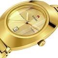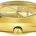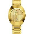 Женские механические часы с автоподзаводом Rado из коллекции Diastar Original — это элегантный аксессуар с классическим дизайном. Корпус овальной формы, диаметром 30 мм и толщиной 11 мм, выполнен из CeramosCeramosМатериал являет собой инновационное сочетание высокотехнологичной керамики и сплава металла. Он объединяет керамическую устойчивость к царапинам и металлический роскошный блеск. с PVD-покрытиемPVDУльтратонкое покрытие наносится в технике вакуумного напыления, сочетает в себе нитрид титана особой прочности со слоем золота или оксида хрома. Несёт в себе декоративную или защитную функцию. золотого цвета. Неподвижный безельБезельВнешний ободок, закрепляющий стекло. В спортивных часах так называется поворотное кольцо с делениями на циферблате, выполняет роль таймера – замеряет отрезки времени на шкале. Неподвижный безель – элемент декора. Однонаправленно вращающийся безель на дайверских часах позволяет фиксировать моменты погружения и выныривания на поверхность. также изготовлен из Ceramos. Циферблат жёлтого цвета оформлен без индексов, с золотистыми стрелками. Циферблат защищён сапфировым стекломСапфировое стеклоПрочный и надёжный материал из кристалла сапфира синтетического происхождения, характеризующийся особой твёрдостью и устойчивостью к царапинам и повреждениям. с антибликовым покрытиемАнтибликовое покрытиеСлой оксида металла в 0,13-0,3 микрон, благодаря которому стекло часов не бликует и не отражает свет. Антибликовое покрытие уменьшает отражение света в 10 раз, обеспечивая отличную читаемость показателей циферблата. на внутренней стороне. Стрелки с люминесцентным покрытиемЛюминесцентное покрытиеПозволяет считывать показания времени в темноте. Производители наносят на стрелки, часовые индексы, безель или поверхность циферблата светонакопительный состав, дающий холодное свечение. Super-Luminova®, обеспечивающим хорошую читаемость в темноте. Механизм — автоматический калибр R586 с запасом хода 48 часов, частотой 28 800 полуколебаний в час и 25 камнями. Окошко даты расположено в положении 6 часов. Часы оснащены стальным браслетом с застёжкой «бабочка» с кнопкамиЗастёжка "бабочка"Такой вид застёжки дополняется предохранителями, помогающими избежать случайного раскрытия браслета. Обладают изящным исполнением. . Водонепроницаемость 100 м позволяет использовать часы для плавания. Гарантия — 5 лет на механизм, 2 года на изделие. Идеальный выбор для тех, кто ценит стиль, точность и швейцарское качество.