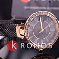 Модель в стиле fashion имеет привлекательный циферблат с узорчатой серединкой. БезельБезельВнешний ободок, закрепляющий стекло. В спортивных часах так называется поворотное кольцо с делениями на циферблате, выполняет роль таймера – замеряет отрезки времени на шкале. Неподвижный безель – элемент декора. Однонаправленно вращающийся безель на дайверских часах позволяет фиксировать моменты погружения и выныривания на поверхность. декорирован цирконами, добавляющими настроение праздника. Кварцевый механизм. Браслет необычного плетения. Минеральное стекло. Розовое и чёрное PVD-покрытиеPVDУльтратонкое покрытие наносится в технике вакуумного напыления, сочетает в себе нитрид титана особой прочности со слоем золота или оксида хрома. Несёт в себе декоративную или защитную функцию.. Водонепроницаемость 30 метров.