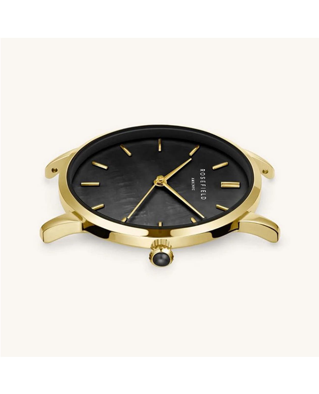 Женские кварцевые часы Rosefield RBGMG-R07. Черный перламутровый циферблат. Круглый корпус выполнен из металла с IP покрытием цвета желтого золота. Диаметр корпуса составляет 36 мм, толщина 7,5 мм. Стальной браслет с покрытием выполнен в технике миланского плетения, раскладная застежка. Прочное минеральное стекло устойчивое к мелким механическим повреждениям. Водостойкость WR 30 (брызги).
