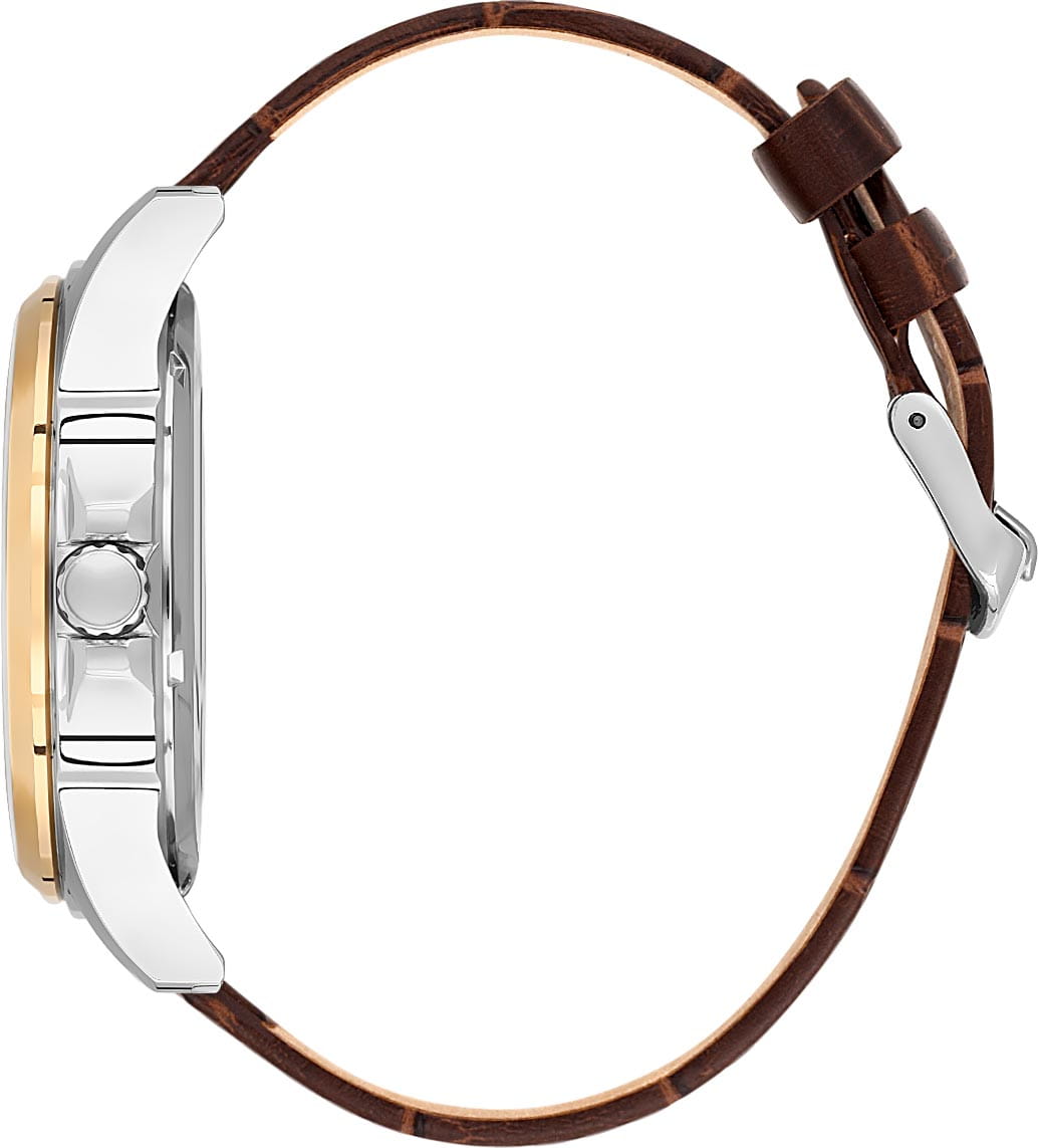Мужские механические часы с автоподзаводом Santa Barbara Polo & Racquet Club — это стильный и технологичный аксессуар. Корпус диаметром 45 мм выполнен из стали. БезельБезельВнешний ободок, закрепляющий стекло. В спортивных часах так называется поворотное кольцо с делениями на циферблате, выполняет роль таймера – замеряет отрезки времени на шкале. Неподвижный безель – элемент декора. Однонаправленно вращающийся безель на дайверских часах позволяет фиксировать моменты погружения и выныривания на поверхность. с IP-покрытиемIP-покрытиеМетод ионного напыления. Демонстрирует повышенную устойчивость к истиранию, окислению и химическим веществам. Под воздействием высокого давления и температуры около 1500°C молекулы металла надёжно соединяются с частицами корпуса часов., с матовой и полированной отделкой. Циферблат серебристого цвета частично скелетонизирован, что позволяет наблюдать за работой механизма. Двухуровневый циферблат украшен фирменным логотипом и накладными метками в виде штрихов. Часы оснащены индикацией второго часового пояса. Стрелки заострённые, прямоугольные, в стиле Baton, с люминесцентным покрытиемЛюминесцентное покрытиеПозволяет считывать показания времени в темноте. Производители наносят на стрелки, часовые индексы, безель или поверхность циферблата светонакопительный состав, дающий холодное свечение., обеспечивающим хорошую читаемость в темноте. Метки также имеют люминесцентное покрытие. Циферблат защищён минеральным стекломМинеральное стеклоМинеральное стекло представляет собой искусственно выращенный минерал кварца. Такое стекло отличается особой устойчивостью к повреждениям и царапинам. Уступает по некоторым качествам сапфировому стеклу.. Часы оснащены кожаным ремешком с классической пряжкой. Водонепроницаемость 50 м позволяет использовать часы в повседневных условиях. Идеальный выбор для тех, кто ценит современный дизайн, функциональность и качество.