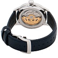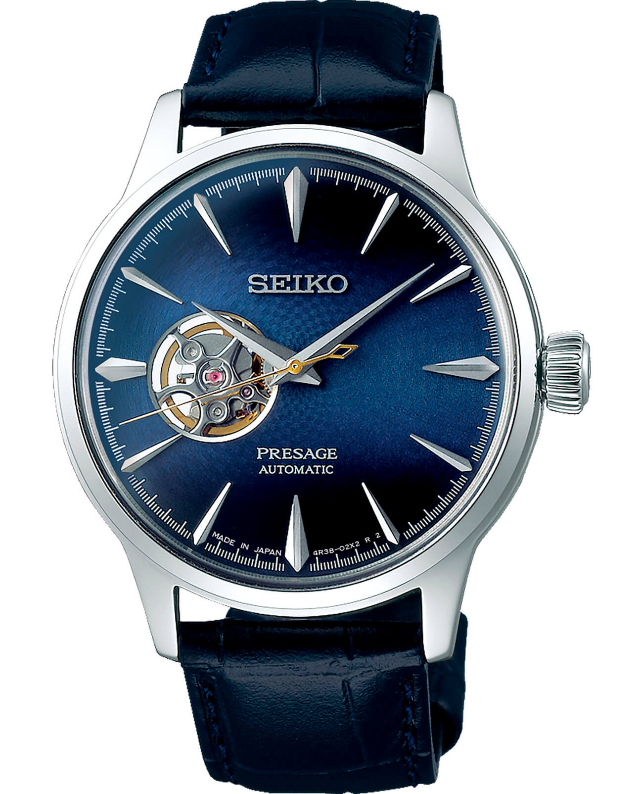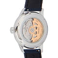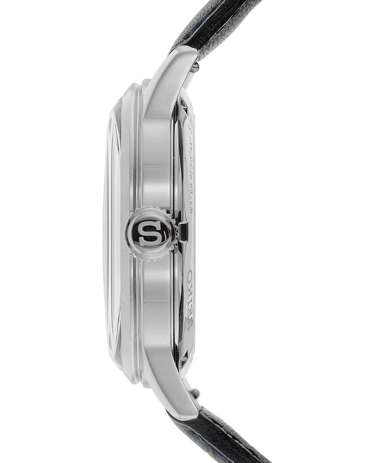 Синий циферблат привлекает лаконичным узором, крупная индикация времени обеспечивает идеальную читаемость данных. На позиции 9 часов размещено круглое окошко, позволяющее прикоснуться к миру часового искусства. Это часы с автоподзаводом, работа японского автоматического механизма Seiko 4R38 просматривается сквозь завинчивающуюся прозрачную заднюю крышку. Запас хода – 40 часов, функция «stop-second» позволяет остановить часовой механизм для настройки времени с точностью до секунды. Ремешок выполнен из натуральной кожи. Циферблат защищён ультрапрочным минеральным стеклом Hardlex. Диаметр корпуса: 40,5 мм.