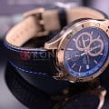 Успешные люди, желающие идти в ногу со временем, выбирают инновационные и надежные часы марки Seiko. Кварцевый механизм, калибр Seiko 8T67. Корпус круглой формы выполнен из высокопрочной стали с антикоррозийными свойствами с PVD покрытием. Синий фон циферблата с позолоченными элементами дизайна. Часы снабжены минеральным стеклом, устойчивым к царапинам. Водонепроницаемость до 100 метров. Часы прочно удерживаются на руке ремешком из натуральной кожи синего цвета. Часы оснащены хронографом и тахиметром.