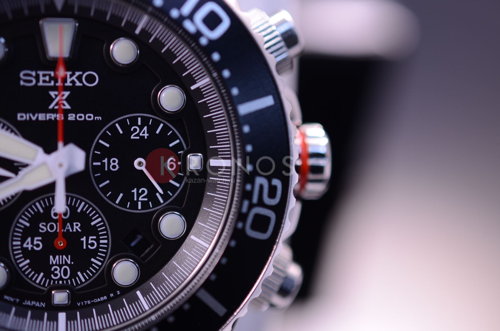 Мужские наручные часы пригодные для подводных погружений, работающие от солнечных батарей Секундомер с точностью показаний до 1/5 секунды и максимальным временем измерения - 60 минут. Индикация числа. Отдельный циферблат с 24-х часовым форматом времени (суточник). Устойчивое к механическим воздействиям многослойное минеральное стекло изготовленное по технологии Hardlex. Вращающийся безель. Задняя крышка с винтовым фиксатором. Завинчивающиеся заводная головка и кнопки управления хронографом. Минеральное стекло повышенной прочности. Люминесцентные стрелки и индексы. Диаметр корпуса 44 мм.