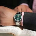 Модель SBGJ251G из коллекции Grand Seiko — это гармоничное сочетание японской эстетики и высокоточной механики. Циферблат с текстурой, напоминающей отражение свежевыпавшего снега на лакированном полу, вдохновлён японским понятием "Yukigesho". Корпус диаметром 39,5 мм и браслет выполнены из нержавеющей стали, подчёркивая изысканный стиль. Часы оснащены автоматическим механизмом калибра 9S86 с частотой 36 000 пк/ч и запасом хода до 55 часов. Циферблат защищён сапфировым стекломСапфировое стеклоПрочный и надёжный материал из кристалла сапфира синтетического происхождения, характеризующийся особой твёрдостью и устойчивостью к царапинам и повреждениям. с антибликовым покрытиемАнтибликовое покрытиеСлой оксида металла в 0,13-0,3 микрон, благодаря которому стекло часов не бликует и не отражает свет. Антибликовое покрытие уменьшает отражение света в 10 раз, обеспечивая отличную читаемость показателей циферблата. на внутренней стороне. Установлена раскладная застёжкаРаскладная застёжкаТакой тип застёжки используется только на браслетах из металла. Она никогда не раскрывается полностью, происходит разделение на 2 и более частей. Раскладывающая застёжка снизит вероятность потери часов к минимуму. с тройным сгибом и кнопочным замком. Модель обладает функцией GMTGMTОтображение времени второго часового пояса.Такая функция особенно актуальна для путешественников и бизнесменов,которые общаются с людьми из разных стран,теперь вы всегда будете знать,какой час у вашего партнёра или близкого человека., позволяющей отслеживать второе время, и устойчива к магнитным полям до 4 800 A/m. Водонепроницаемость составляет 30 метров, что делает её подходящей для повседневного использования.