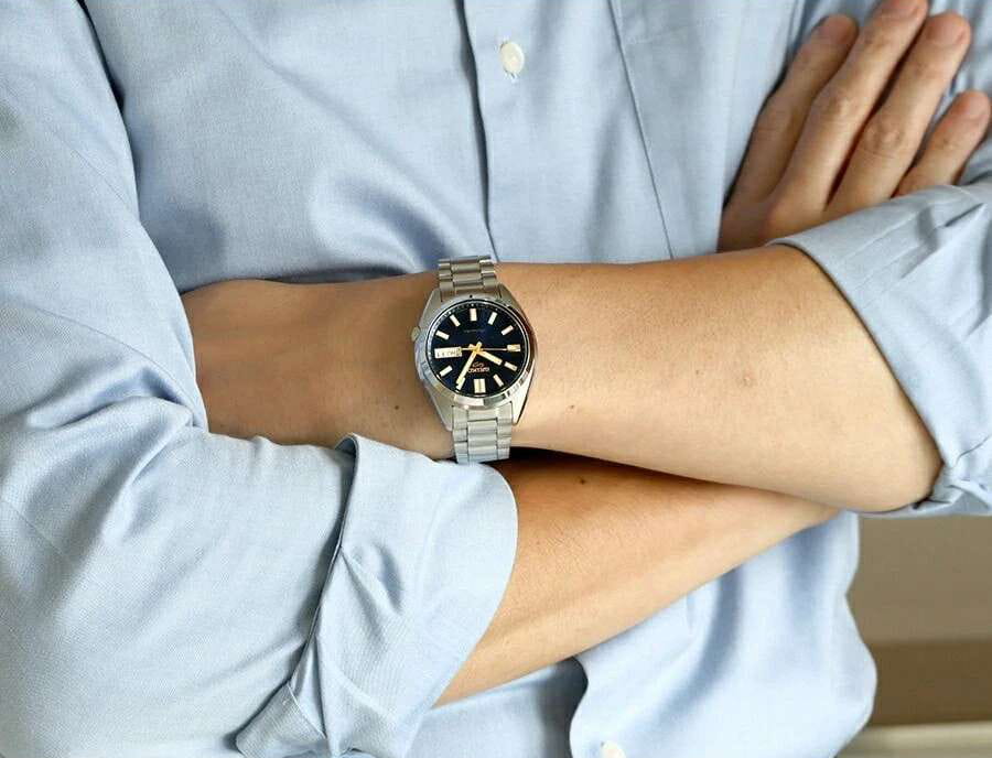 Мужские механические часы с автоподзаводом Seiko 5 Sports SBSA291 — классика японского надёжного дизайна. Круглый корпус размером 38 мм из нержавеющей стали с синим циферблатом, индикацией даты и дня недели. Стекло — минеральноеМинеральное стеклоМинеральное стекло представляет собой искусственно выращенный минерал кварца. Такое стекло отличается особой устойчивостью к повреждениям и царапинам. Уступает по некоторым качествам сапфировому стеклу. Hardlex, с выпуклой формой. Стрелки и метки с люминесцентным покрытиемЛюминесцентное покрытиеПозволяет считывать показания времени в темноте. Производители наносят на стрелки, часовые индексы, безель или поверхность циферблата светонакопительный состав, дающий холодное свечение. Lumibrite. Механизм — японский калибр 4R36 (24 камня, запас хода около 41 часа), с функцией stop-second. Водонепроницаемость 100 м. Задняя крышка — завинчивающаяся и прозрачная. Браслет — стальной на раскладной застёжкеРаскладная застёжкаТакой тип застёжки используется только на браслетах из металла. Она никогда не раскрывается полностью, происходит разделение на 2 и более частей. Раскладывающая застёжка снизит вероятность потери часов к минимуму.. Идеальный выбор для тех, кто ценит японское качество и повседневную функциональность.