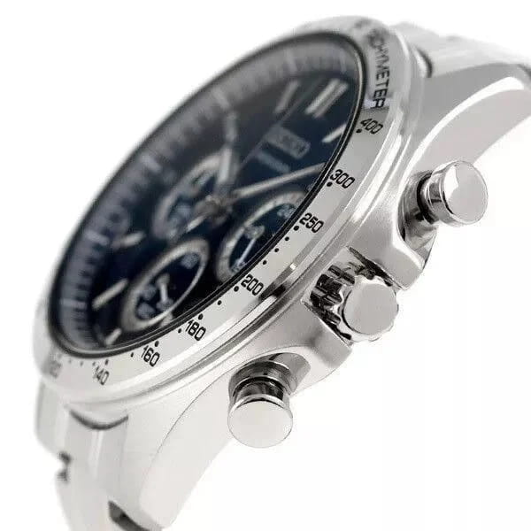 Мужские кварцевые часы Seiko SBTR011 из коллекции Spirit — это сочетание точности, функциональности и современного дизайна. Часы оснащены японским механизмом калибра 8T63 с функцией хронографаХронографФункция позволяет измерять отрезки времени с особой точностью: часы, минуты, секунды. Верным признаком хронографа является наличие на циферблате 3 дополнительных окошек-счётчиков., включающей секундомер с точностью 1/5 секунды и временем измерения до 1 часа, отображаемый центральной стрелкой. Также реализована функция тахиметраТахиметрРазмеченная шкала, располагается на ободке или безеле часов. Тахиметр позволяет рассчитать скорость на определённом участке пути, расстояние измеряется в километрах или милях.. Центральные часовая и минутная стрелки дополнены вынесенной секундной стрелкой на отдельном циферблате, окошко даты расположено между отметками 4 и 5 часов. Циферблат синего цвета оформлен штриховыми метками, стрелки и метки покрыты люминесцентным покрытиемЛюминесцентное покрытиеПозволяет считывать показания времени в темноте. Производители наносят на стрелки, часовые индексы, безель или поверхность циферблата светонакопительный состав, дающий холодное свечение. LumiBrite, обеспечивающим хорошую читаемость в темноте. Корпус выполнен из нержавеющей стали и защищён прочным минеральным стеклом Hardlex, устойчивым к царапинам. Браслет из нержавеющей стали фиксируется на раскладной застёжкеРаскладная застёжкаТакой тип застёжки используется только на браслетах из металла. Она никогда не раскрывается полностью, происходит разделение на 2 и более частей. Раскладывающая застёжка снизит вероятность потери часов к минимуму.. Водонепроницаемость 100 м позволяет использовать часы для плавания, ныряния и других водных видов спорта. Модель подходит как для повседневного, так и для делового образа.
