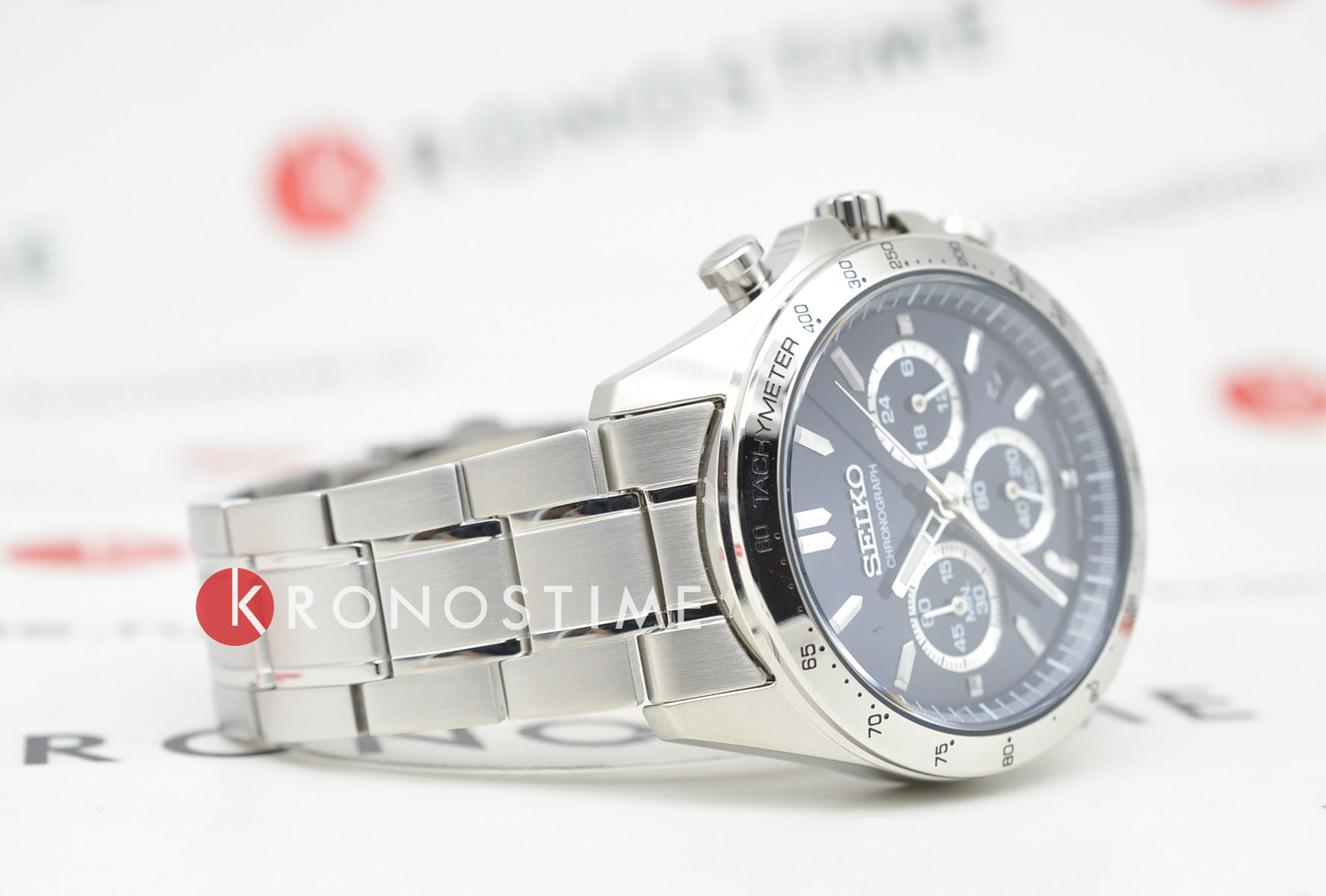 Мужские кварцевые часы Seiko SBTR011 из коллекции Spirit — это сочетание точности, функциональности и современного дизайна. Часы оснащены японским механизмом калибра 8T63 с функцией хронографаХронографФункция позволяет измерять отрезки времени с особой точностью: часы, минуты, секунды. Верным признаком хронографа является наличие на циферблате 3 дополнительных окошек-счётчиков., включающей секундомер с точностью 1/5 секунды и временем измерения до 1 часа, отображаемый центральной стрелкой. Также реализована функция тахиметраТахиметрРазмеченная шкала, располагается на ободке или безеле часов. Тахиметр позволяет рассчитать скорость на определённом участке пути, расстояние измеряется в километрах или милях.. Центральные часовая и минутная стрелки дополнены вынесенной секундной стрелкой на отдельном циферблате, окошко даты расположено между отметками 4 и 5 часов. Циферблат синего цвета оформлен штриховыми метками, стрелки и метки покрыты люминесцентным покрытиемЛюминесцентное покрытиеПозволяет считывать показания времени в темноте. Производители наносят на стрелки, часовые индексы, безель или поверхность циферблата светонакопительный состав, дающий холодное свечение. LumiBrite, обеспечивающим хорошую читаемость в темноте. Корпус выполнен из нержавеющей стали и защищён прочным минеральным стеклом Hardlex, устойчивым к царапинам. Браслет из нержавеющей стали фиксируется на раскладной застёжкеРаскладная застёжкаТакой тип застёжки используется только на браслетах из металла. Она никогда не раскрывается полностью, происходит разделение на 2 и более частей. Раскладывающая застёжка снизит вероятность потери часов к минимуму.. Водонепроницаемость 100 м позволяет использовать часы для плавания, ныряния и других водных видов спорта. Модель подходит как для повседневного, так и для делового образа.