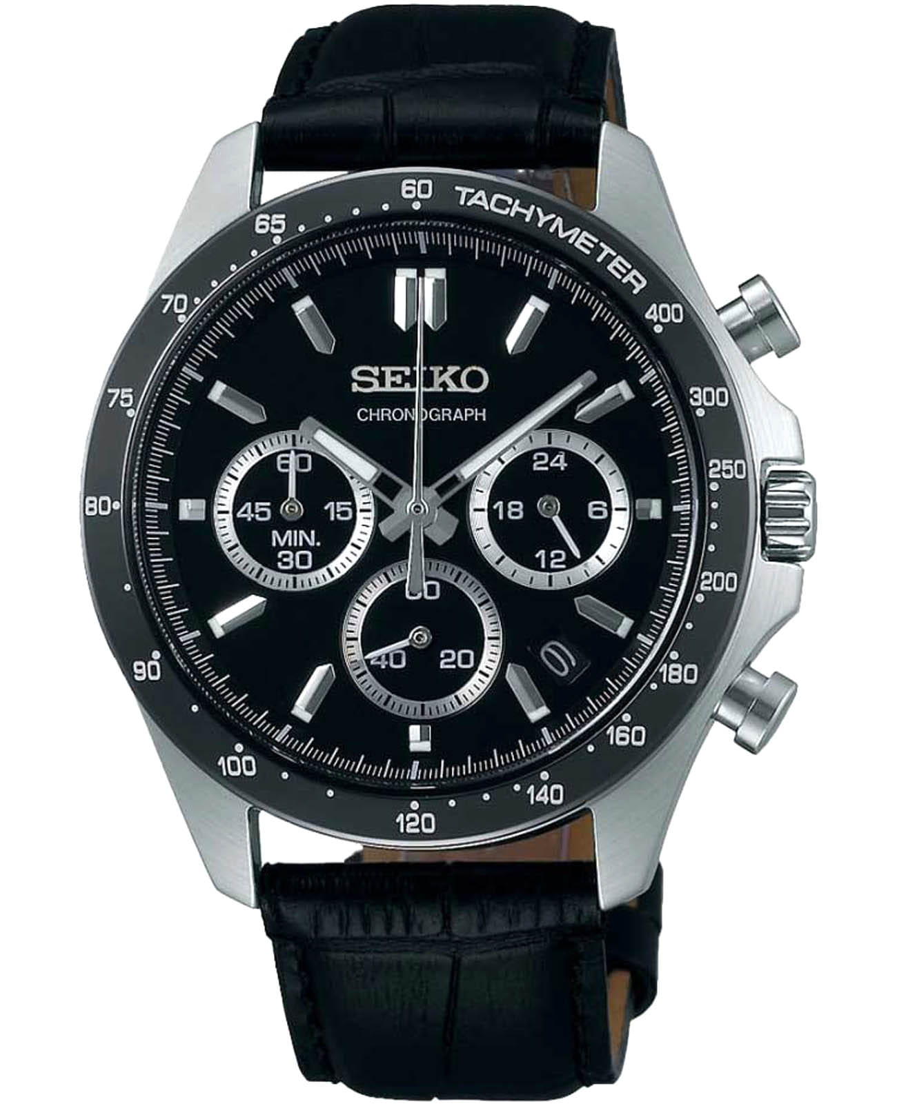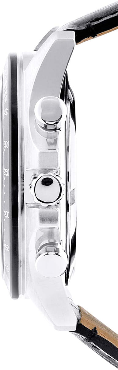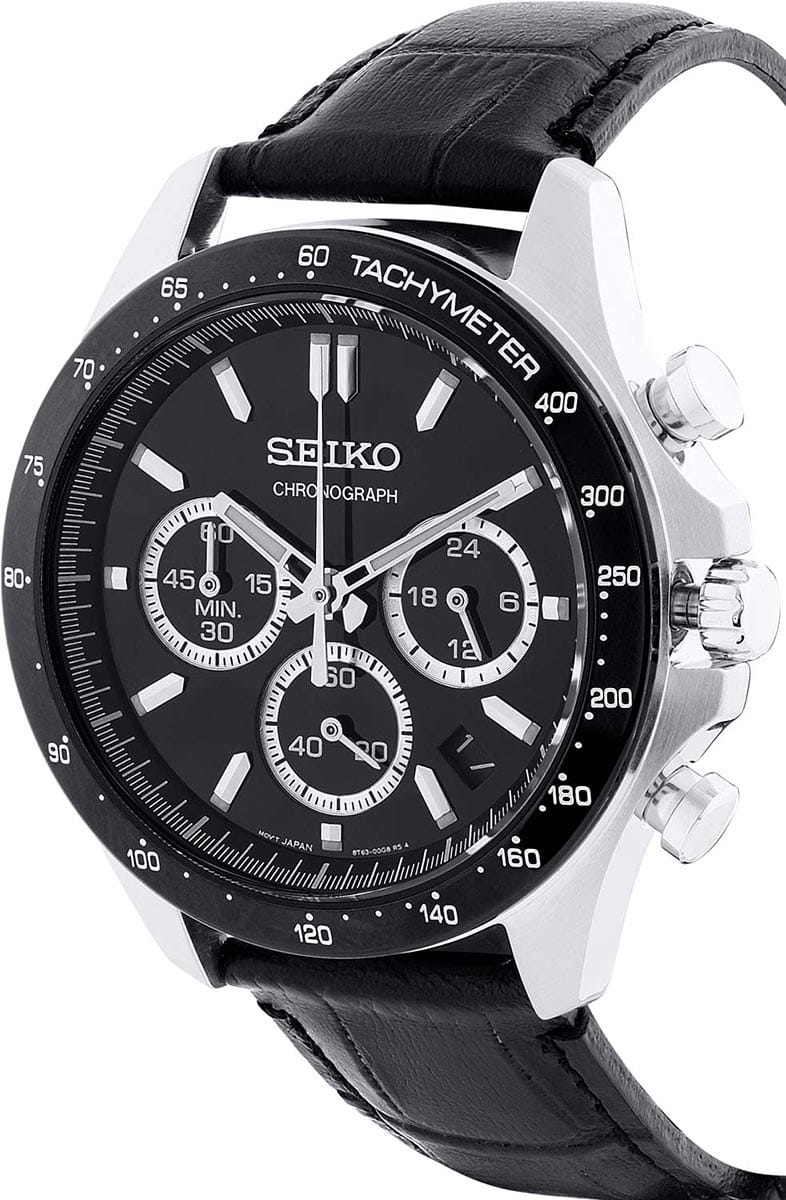 Мужские японские часы-хронографХронографФункция позволяет измерять отрезки времени с особой точностью: часы, минуты, секунды. Верным признаком хронографа является наличие на циферблате 3 дополнительных окошек-счётчиков. с секундомеромСекундомерСекундоме́р — прибор, способный измерять интервалы времени с точностью до долей секунды. Seiko Spirit Chronograph SBTR021 — это великолепное сочетание стиля и функциональности, созданное для современных искателей приключений. Минеральное стеклоМинеральное стеклоМинеральное стекло представляет собой искусственно выращенный минерал кварца. Такое стекло отличается особой устойчивостью к повреждениям и царапинам. Уступает по некоторым качествам сапфировому стеклу. с повышенной прочности Hardlex гарантирует защиту циферблата от царапин, сохраняя их безупречный вид на протяжении долгого времени. Внутри этих часов установлен кварцевый механизм, который обеспечивает высокую точность и надежность, позволяя вам всегда оставаться в курсе времени. Класс водозащиты в 100 метров позволяет вам не только плавать и нырять, но и заниматься разнообразными водными видами спорта, уверенно полагаясь на это надежное устройство, которое выдержит даже самые экстремальные условия. Корпус часов изготовлены из прочной нержавеющей стали, что укрепляет их долговечность и подчеркивает современный дизайн. Неподвижный безельБезельВнешний ободок, закрепляющий стекло. В спортивных часах так называется поворотное кольцо с делениями на циферблате, выполняет роль таймера – замеряет отрезки времени на шкале. Неподвижный безель – элемент декора. Однонаправленно вращающийся безель на дайверских часах позволяет фиксировать моменты погружения и выныривания на поверхность. с PVD-покрытиемPVDУльтратонкое покрытие наносится в технике вакуумного напыления, сочетает в себе нитрид титана особой прочности со слоем золота или оксида хрома. Несёт в себе декоративную или защитную функцию. черного цвета, диаметр 42 мм. Шкала тахиметраТахиметрРазмеченная шкала, располагается на ободке или безеле часов. Тахиметр позволяет рассчитать скорость на определённом участке пути, расстояние измеряется в километрах или милях. по внешнему краю. Удобное окошко даты в позиции между 4 и 5 часов, делает эти часы еще более практичными, позволяя быстро сверять текущую дату. Кроме того, стрелки и метки часов оснащены люминесцентным покрытиемЛюминесцентное покрытиеПозволяет считывать показания времени в темноте. Производители наносят на стрелки, часовые индексы, безель или поверхность циферблата светонакопительный состав, дающий холодное свечение., что обеспечивает отличную видимость даже в условиях низкой освещенности, поэтому вы всегда сможете узнать время, независимо от окружающей среды. Кожаный ремешок на застёжке-бабочке с кнопкамиЗастёжка "бабочка"Такой вид застёжки дополняется предохранителями, помогающими избежать случайного раскрытия браслета. Обладают изящным исполнением. обеспечивает комфорт и удобство в использовании, добавляя завершающий штрих к этому стильному и высокоэффективному аксессуару.