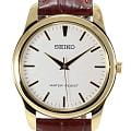 Женские кварцевые часы Seiko — это надёжный и универсальный аксессуар. Корпус диаметром 35 мм выполнен из нержавеющей стали с IP-покрытиемIP-покрытиеМетод ионного напыления. Демонстрирует повышенную устойчивость к истиранию, окислению и химическим веществам. Под воздействием высокого давления и температуры около 1500°C молекулы металла надёжно соединяются с частицами корпуса часов. цвета жёлтого золота. Циферблат белого цвета оформлен индексами и стрелками, включая центральную секундную стрелку. Циферблат защищён прочным закалённым минеральным стеклом Hardlex минеральным стекломМинеральное стеклоМинеральное стекло представляет собой искусственно выращенный минерал кварца. Такое стекло отличается особой устойчивостью к повреждениям и царапинам. Уступает по некоторым качествам сапфировому стеклу.. Механизм — японское кварцевое движение калибра 7N01 с высокой точностью хода (±10–15 сек. в месяц). Часы оснащены коричневым кожаным ремешком на классической пряжке. Водонепроницаемость 30 м позволяет использовать часы в повседневных условиях. Идеальный выбор для тех, кто ценит японское качество и классический дизайн.