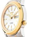 Элегантный аксессуар в биколорном исполнении стильно смотрится на широком мужском запястье, выгодно подчёркивая ваш тонкий вкус. Светлый циферблат с золотистыми стрелками и метками обеспечивает идеальную читаемость данных, он защищён минеральным стеклом Hardlex с закаленной поверхностью. Абсолютная точность хода достигается благодаря автоматическому японскому механизму 7S26, запас хода которого рассчитан на 40 часов. Прозрачная задняя крышка позволяет наблюдать за движением деталей калибра. Часы устойчивы к воздействию магнитного поля, прочные корпус и браслет сделаны из стали 316L с частичным PVD-покрытиемPVDУльтратонкое покрытие наносится в технике вакуумного напыления, сочетает в себе нитрид титана особой прочности со слоем золота или оксида хрома. Несёт в себе декоративную или защитную функцию.. Стрелки имеют люминесцентную подсветкуЛюминесцентное покрытиеПозволяет считывать показания времени в темноте. Производители наносят на стрелки, часовые индексы, безель или поверхность циферблата светонакопительный состав, дающий холодное свечение.. На метке 3 часов размещена апертура даты, отображается текущее число и день недели. Диаметр корпуса: 38 мм.