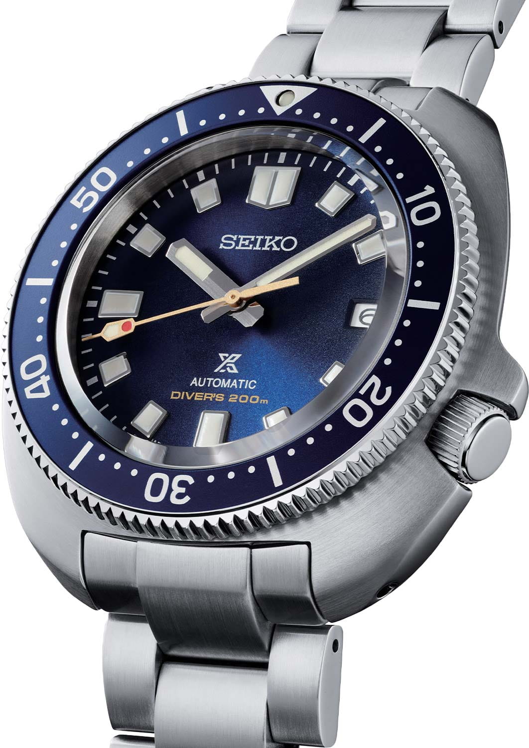 Мужские механические часы с автоподзаводом Seiko — это спортивный аксессуар из коллекции Prospex, выпущенный ограниченной серией в честь 55-летия легендарных дайверских часов Seiko — всего 5500 экземпляров. Корпус диаметром 42 мм и толщиной 13 мм выполнен из стали с частичным PVD-покрытиемPVDУльтратонкое покрытие наносится в технике вакуумного напыления, сочетает в себе нитрид титана особой прочности со слоем золота или оксида хрома. Несёт в себе декоративную или защитную функцию.. Циферблат синего цвета оформлен штрихами и логотипом бренда. Окошко даты расположено в положении 3 часов. Стрелки и метки с люминесцентным покрытиемЛюминесцентное покрытиеПозволяет считывать показания времени в темноте. Производители наносят на стрелки, часовые индексы, безель или поверхность циферблата светонакопительный состав, дающий холодное свечение. LumiBrite, обеспечивающим высокую читаемость в темноте. Циферблат защищён изогнутым сапфировым стекломСапфировое стеклоПрочный и надёжный материал из кристалла сапфира синтетического происхождения, характеризующийся особой твёрдостью и устойчивостью к царапинам и повреждениям. с антибликовым покрытиемАнтибликовое покрытиеСлой оксида металла в 0,13-0,3 микрон, благодаря которому стекло часов не бликует и не отражает свет. Антибликовое покрытие уменьшает отражение света в 10 раз, обеспечивая отличную читаемость показателей циферблата. на внутренней поверхности. Механизм — автоматический калибр 6R35 (24 камня, частота 21 600 полуколебаний в час) с возможностью ручного завода и функцией , запас хода до 70 часов. БезельБезельВнешний ободок, закрепляющий стекло. В спортивных часах так называется поворотное кольцо с делениями на циферблате, выполняет роль таймера – замеряет отрезки времени на шкале. Неподвижный безель – элемент декора. Однонаправленно вращающийся безель на дайверских часах позволяет фиксировать моменты погружения и выныривания на поверхность. — однонаправленный, вращающийся. Завинчивающаяся задняя крышка и заводная головка с защитой на позиции 4 часов повышают надёжность. Часы оснащены стальным браслетом с раскладной застёжкойРаскладная застёжкаТакой тип застёжки используется только на браслетах из металла. Она никогда не раскрывается полностью, происходит разделение на 2 и более частей. Раскладывающая застёжка снизит вероятность потери часов к минимуму. с системой блокировки. В комплекте — сменный силиконовый ремешок. Водонепроницаемость 200 м позволяет использовать часы для профессионального плавания и дайвинга. Идеальный выбор для тех, кто ценит историю, точность и мощный дизайн.