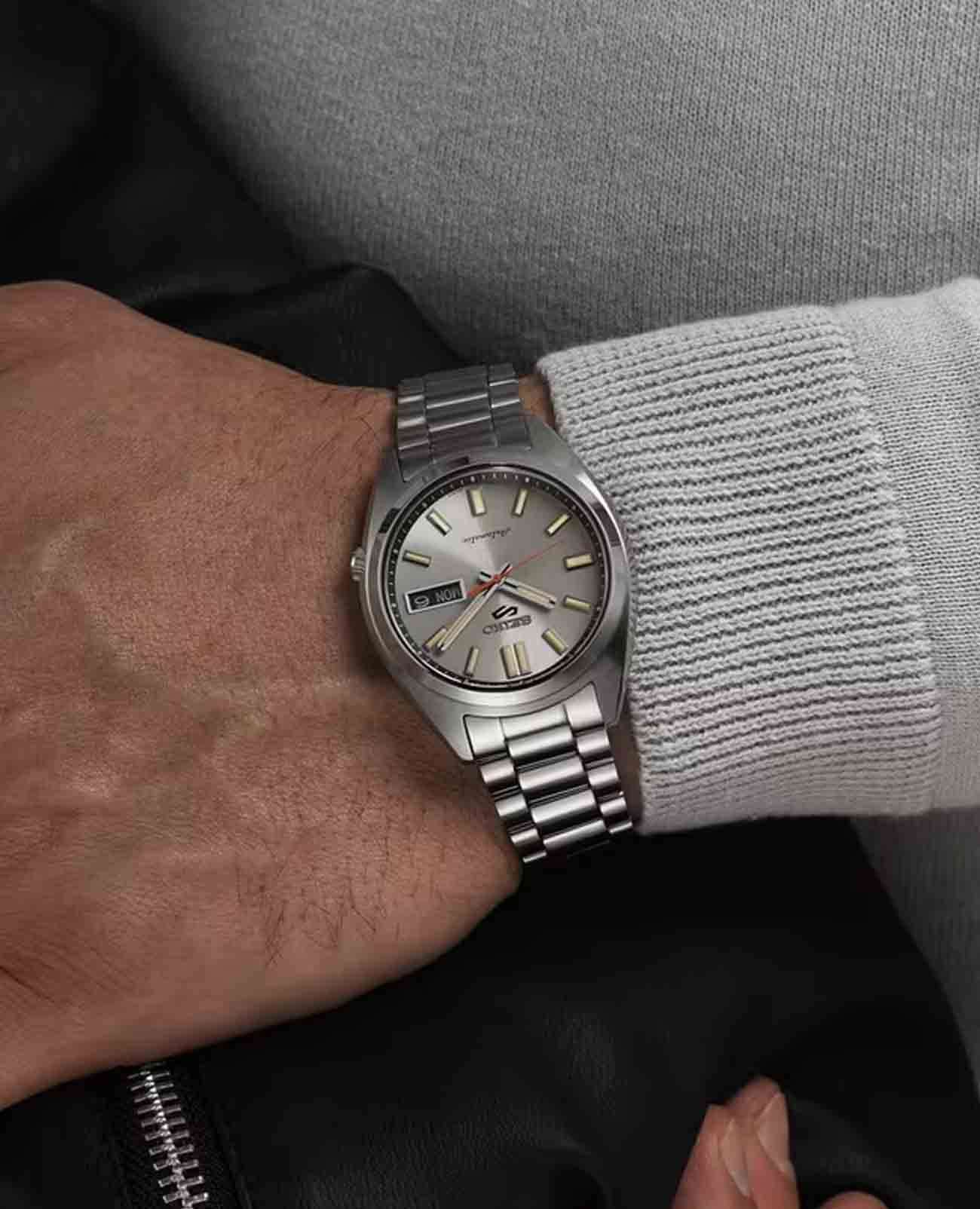 Механические часы с автоподзаводом и возможностью ручной подзаводки оснащены калибром 4R36 — проверенным механизмом, разработанным для надёжности и точности. Механизм имеет 24 драгоценных камня и обеспечивает запас хода до 41 часа. Также реализована функция стоп-секунды для точной установки времени и отображение дня недели и даты. Циферблат дополнен люминесцентным покрытиемЛюминесцентное покрытиеПозволяет считывать показания времени в темноте. Производители наносят на стрелки, часовые индексы, безель или поверхность циферблата светонакопительный состав, дающий холодное свечение. LumiBrite на стрелках и индексах, обеспечивающим отличную читаемость даже в условиях слабого освещения. Защиту циферблата обеспечивает минеральное стеклоМинеральное стеклоМинеральное стекло представляет собой искусственно выращенный минерал кварца. Такое стекло отличается особой устойчивостью к повреждениям и царапинам. Уступает по некоторым качествам сапфировому стеклу. Hardlex с выпуклой формой — прочное и устойчивое к мелким повреждениям. Корпус изготовлен из нержавеющей стали, а задняя крышка — завинчивающаяся и прозрачная, что позволяет рассмотреть работу механизма и подчёркивает внимание к деталям внутренней отделки. Часы обладают защитой от магнитных полей до 4800 А/м и водонепроницаемостью , что позволяет использовать их при плавании или занятиях водными видами спорта без глубокого погружения. Браслет выполнен из стали и оснащён трёхсгибной раскладной застёжкойРаскладная застёжкаТакой тип застёжки используется только на браслетах из металла. Она никогда не раскрывается полностью, происходит разделение на 2 и более частей. Раскладывающая застёжка снизит вероятность потери часов к минимуму. с кнопочным механизмом, обеспечивающей комфорт и уверенную фиксацию на запястье. Расстояние между ушками составляет 18 мм, что делает модель совместимой со стандартными браслетами и ремешками. Эти часы станут универсальным аксессуаром для тех, кто ценит сочетание технологичности, прочности и эстетики — идеальный выбор как для повседневного использования, так и для активного образа жизни.