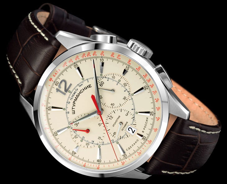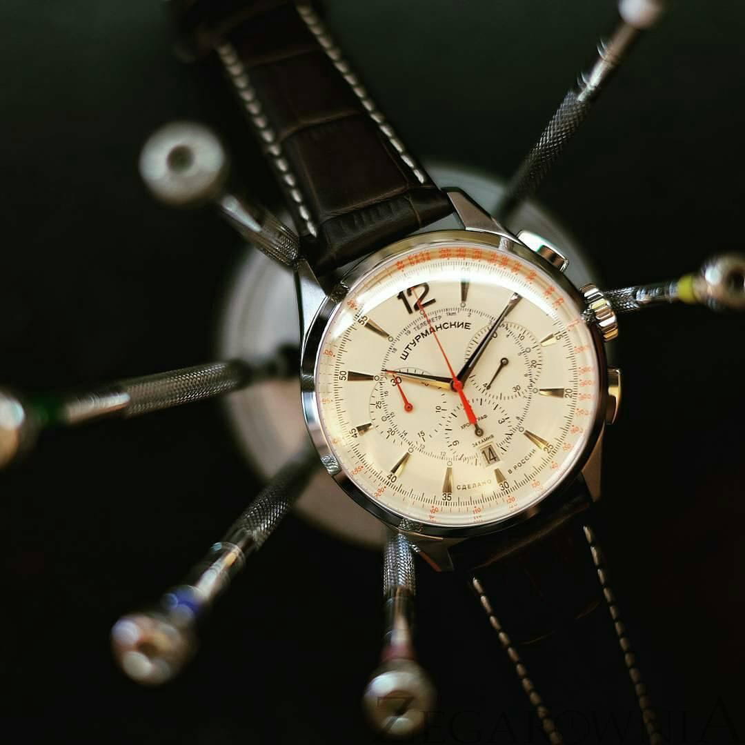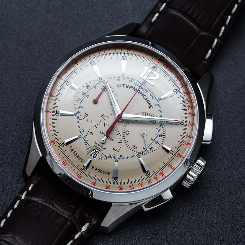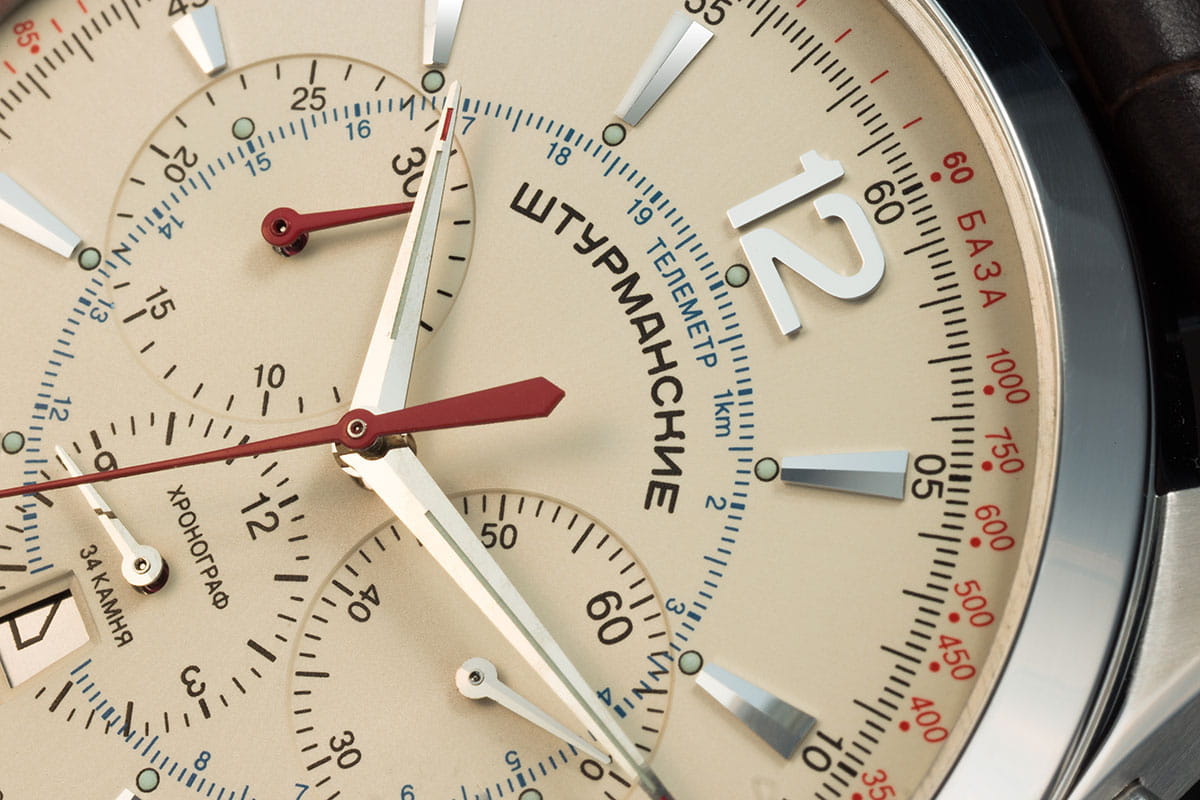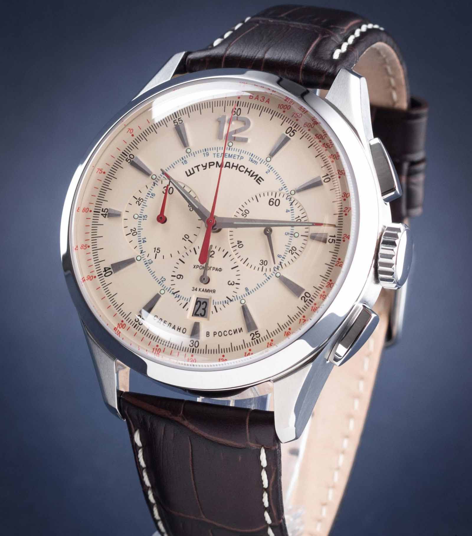 Лимитированные мужские российские механические часы-хронографХронографФункция позволяет измерять отрезки времени с особой точностью: часы, минуты, секунды. Верным признаком хронографа является наличие на циферблате 3 дополнительных окошек-счётчиков. с секундомеромСекундомерСекундоме́р — прибор, способный измерять интервалы времени с точностью до долей секунды. Штурманские Открытый Космос NE88/1855992, механический механизм (автоматический калибр) с высокой точностью. Лимитированная серия - 500 экземпляров. Сапфировое стеклоСапфировое стеклоПрочный и надёжный материал из кристалла сапфира синтетического происхождения, характеризующийся особой твёрдостью и устойчивостью к царапинам и повреждениям. устойчивое к появлению царапин, обладающее высокой прозрачностью. Класс водозащиты: 50 метров, позволит защитить корпус от случайных брызг или капель дождя. Корпус часов изготовлен из стали. Кожаный ремешок на стандартной застёжке. Стрелки и метки с люминесцентным покрытиемЛюминесцентное покрытиеПозволяет считывать показания времени в темноте. Производители наносят на стрелки, часовые индексы, безель или поверхность циферблата светонакопительный состав, дающий холодное свечение.. Стальной корпус надежно защищает от повреждений механический японский калибр Seiko NE88 на 34 камня с запасом хода 42 часа. Подзавод у часов автоматический.