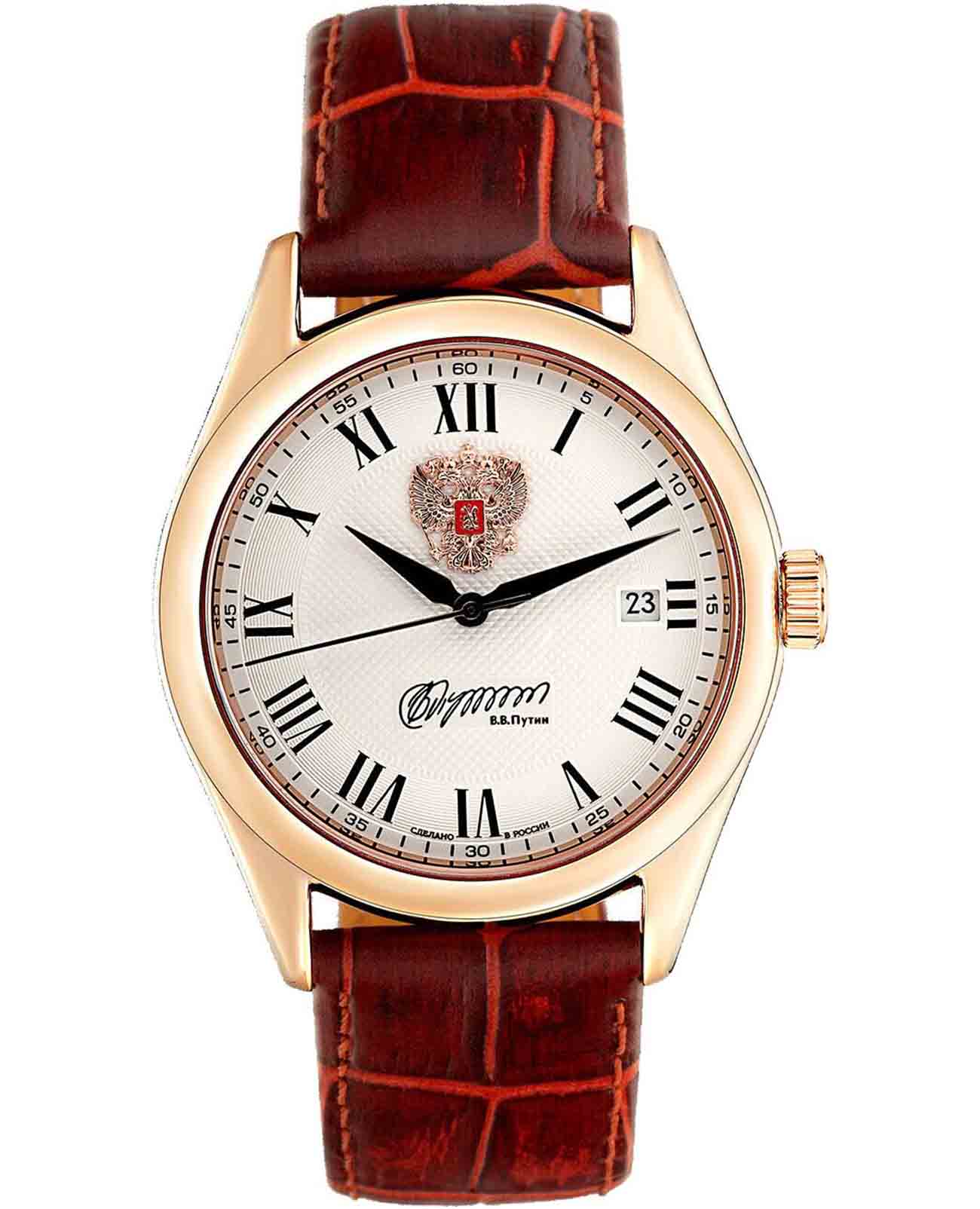 Российские механические наручные часы Слава 1493931/300-8215, которые станут идеальным аксессуаром для повседневного ношения. Эти часы сочетают в себе элегантность и практичность, предлагая безупречный стиль и надежность. Оснащенные механизмом Miyota 8215 с автоподзаводом, они обеспечивают точность и долговечность, поддерживая запас хода до 42 часов. Стальной корпус с IP-покрытиемIP-покрытиеМетод ионного напыления. Демонстрирует повышенную устойчивость к истиранию, окислению и химическим веществам. Под воздействием высокого давления и температуры около 1500°C молекулы металла надёжно соединяются с частицами корпуса часов. и сапфировым стекломСапфировое стеклоПрочный и надёжный материал из кристалла сапфира синтетического происхождения, характеризующийся особой твёрдостью и устойчивостью к царапинам и повреждениям. защищает белый циферблат с римскими цифрами. На циферблате изображены герб Российской Федерации и автограф В.В. Путина. Часы также имеют календарь с окошком даты на 3 часах и водозащиту до 50WR, что делает их надежными в различных условиях. Текстурированный кожаный ремешок с классической застежкой завершает этот изысканный образ.