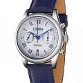 Российские механические наручные часы-хронографХронографФункция позволяет измерять отрезки времени с особой точностью: часы, минуты, секунды. Верным признаком хронографа является наличие на циферблате 3 дополнительных окошек-счётчиков. с секундомеромСекундомерСекундоме́р — прибор, способный измерять интервалы времени с точностью до долей секунды. Слава Сенат 1880139/300-4617, которые станут идеальным аксессуаром для повседневного ношения. Эти часы сочетают в себе элегантность и практичность, предлагая безупречный стиль и надежность. Оснащенные механизмом Peacock 4617 с автоподзаводом, они обеспечивают точность и долговечность. Стальной корпус с сапфировым стекломСапфировое стеклоПрочный и надёжный материал из кристалла сапфира синтетического происхождения, характеризующийся особой твёрдостью и устойчивостью к царапинам и повреждениям. защищает белый циферблат с римскими цифрами. Часы также имеют календарь с окошком даты на 6 часах и водозащиту до 50WR, что делает их надежными в различных условиях. Стрелки часов с люминесцентным покрытиемЛюминесцентное покрытиеПозволяет считывать показания времени в темноте. Производители наносят на стрелки, часовые индексы, безель или поверхность циферблата светонакопительный состав, дающий холодное свечение., что облегчает чтение времени даже в условиях слабого освещения. Текстурированный кожаный синий ремешок с классической застежкой завершает этот изысканный образ.