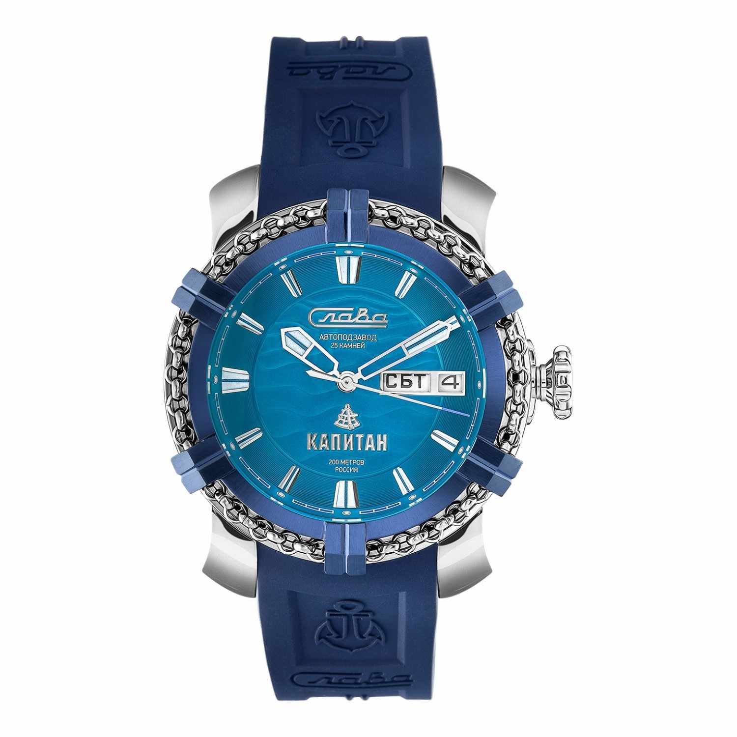 Российские механические наручные часы Слава Капитан 2470353/800-2427 — идеальный выбор для мужчин, ценящих стиль и надежность. Эта уникальная модель выпущена ограниченной серией в 500 экземпляров и сочетает в себе модный дизайн и высокое качество исполнения. Корпус часов выполнен из прочной стали и имеет диаметр 44 мм и толщину 16 мм, что придает им солидный и мужественный вид. БезельБезельВнешний ободок, закрепляющий стекло. В спортивных часах так называется поворотное кольцо с делениями на циферблате, выполняет роль таймера – замеряет отрезки времени на шкале. Неподвижный безель – элемент декора. Однонаправленно вращающийся безель на дайверских часах позволяет фиксировать моменты погружения и выныривания на поверхность. часов с IP-покрытиемIP-покрытиеМетод ионного напыления. Демонстрирует повышенную устойчивость к истиранию, окислению и химическим веществам. Под воздействием высокого давления и температуры около 1500°C молекулы металла надёжно соединяются с частицами корпуса часов. покрытием сине-серебристого цвета, выполненный в форме штурвала под стать названию коллекции "Капитан", придаёт часам неповторимый морской характер и стиль. Водозащита до 20 ATM позволяет использовать часы даже при погружении в воду, что делает их отличным выбором для активных мужчин. Голубой циферблат с метками и сапфировое стеклоСапфировое стеклоПрочный и надёжный материал из кристалла сапфира синтетического происхождения, характеризующийся особой твёрдостью и устойчивостью к царапинам и повреждениям. обеспечивают долговечность и устойчивость к царапинам. Механический механизм "Слава 2427" с автоподзаводом и возможностью ручного подзавода гарантирует точность и надежность, а двойной календарь добавляет функциональности. На 3 часах расположено окошко с указателем даты и дня недели. Часы комплектуются прочным силиконовым ремешком со стандартной застежкой, обеспечивающим комфорт и надежную фиксацию на запястье. Задняя крышка крепится на 4-х винтах и украшена объемным изображением якоря. Индивидуальный серийный номер. Упакованы в стильную подарочную коробку из экокожи, они станут отличным подарком для любого особого случая. С часами Слава из коллекции Капитан вы подчеркнете свой статус и вкус, оставаясь верным российским традициям качества и стиля.