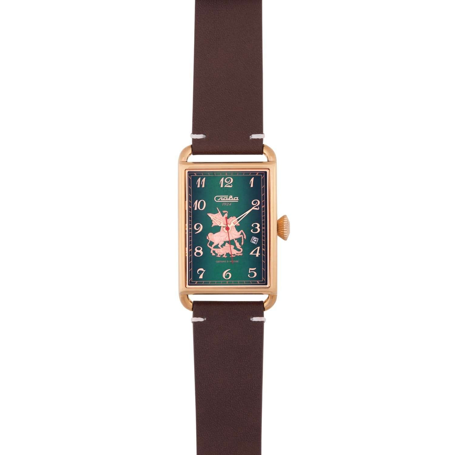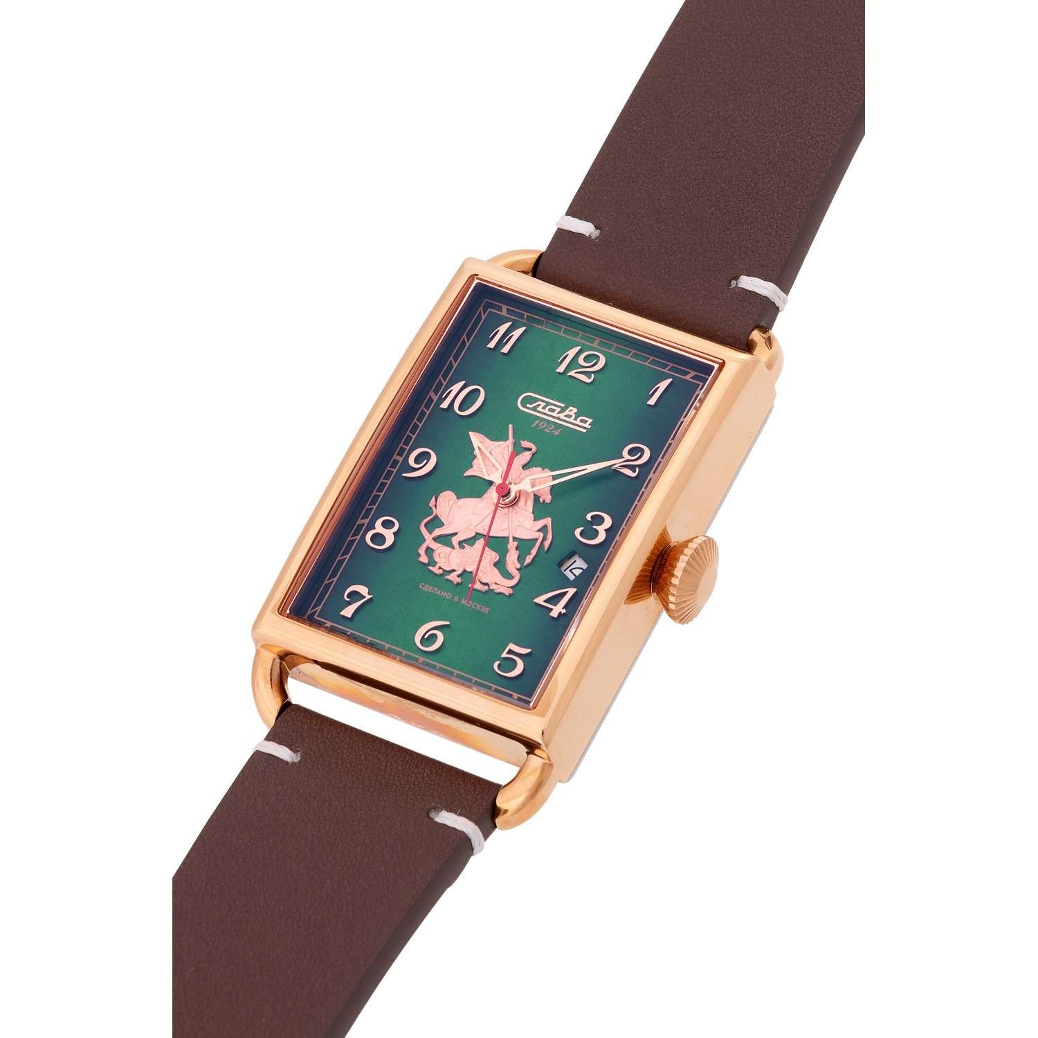 Часы Слава Москва 8703734/300-2414 — это воплощение элегантности и стиля, которое станет идеальным дополнением к вашему деловому гардеробу. Созданные в России, они оснащены надежным механическим механизмом калибра Слава 2414. Корпус выполнен из высококачественной стали с PVDPVDУльтратонкое покрытие наносится в технике вакуумного напыления, сочетает в себе нитрид титана особой прочности со слоем золота или оксида хрома. Несёт в себе декоративную или защитную функцию. покрытием, что обеспечивает долговечность и изысканный внешний вид. Зеленый циферблат украшен изображением Георгия Победоносца и защищен прочным сапфировым стекломСапфировое стеклоПрочный и надёжный материал из кристалла сапфира синтетического происхождения, характеризующийся особой твёрдостью и устойчивостью к царапинам и повреждениям., которое устойчиво к царапинам. Арабские цифры и окошко даты, расположенное между отметками 3 и 4 часа, добавляют функциональности и удобства в использовании. Задняя крышка, крепящаяся на 4 винтах, украшена надписью «Москва», подчеркивая уникальность и оригинальность модели. Кожаный ремешок с классической застежкой и системой быстрой замены не только обеспечивает комфорт, но и позволяет легко менять его по вашему желанию. Часы обладают водозащитой 50WR, что делает их подходящими для ежедневного ношения. Компактные габариты и вес в 70 грамм делают их удобными и практически незаметными на запястье. Эта лимитированная серия выпущена в количестве всего 500 экземпляров, что придает особую ценность и эксклюзивность вашему выбору. Часы поставляются в стильной подарочной упаковке, что делает их отличным подарком для ценителей высокого качества и утонченного дизайна.