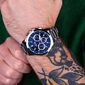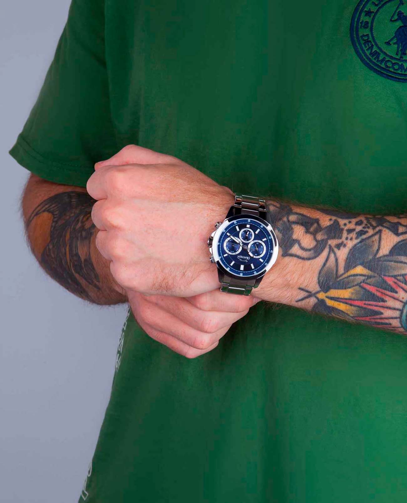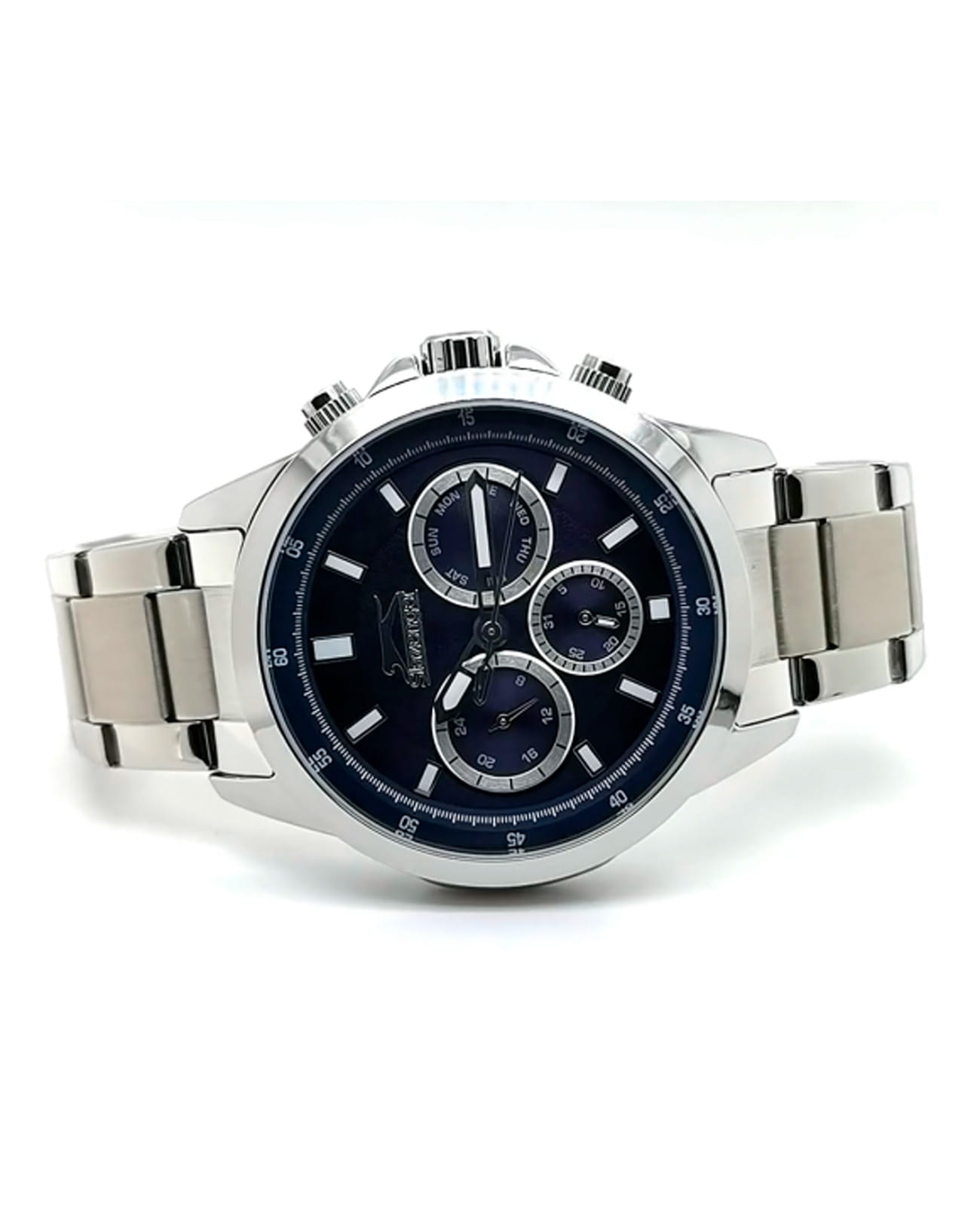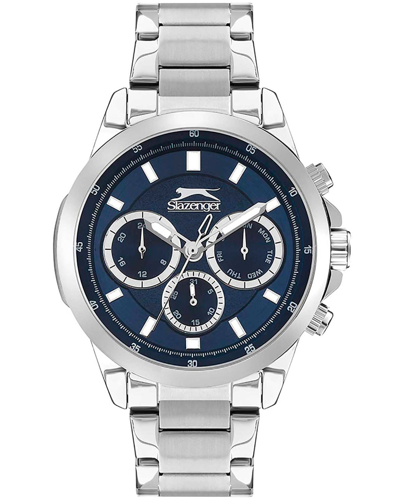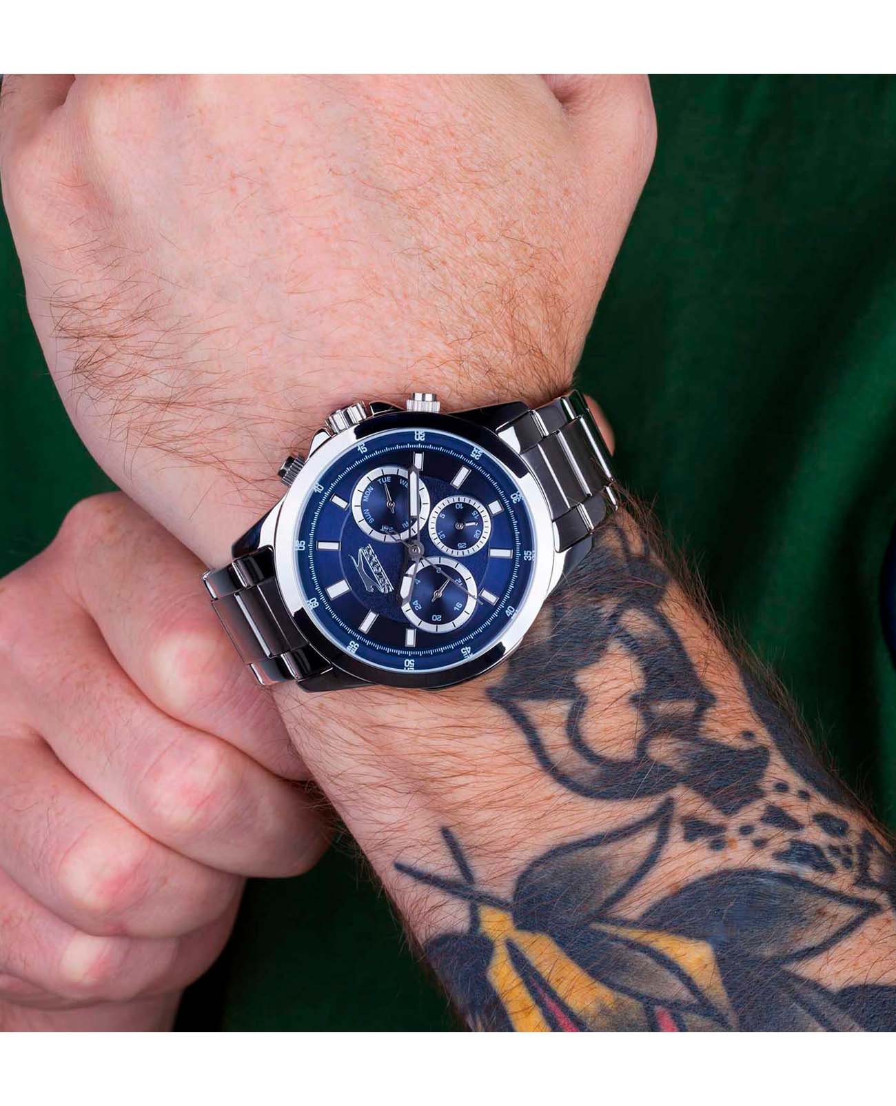Мужские наручные часы Slazenger SL.09.2011.2.04 сочетают в себе классический дизайн и надежность современных технологий. Модель обладает круглым корпусом диаметром 46 мм, изготовленным из суперметалла, что обеспечивает высокую устойчивость к внешним воздействиям. Браслет выполнен из суперметалла с раскладной застежкойРаскладной замокДанный вариант застежки используется только на часах с металлическим браслетом. Отличительная особенность такого крепления в том, что длина браслета становится универсальной и вы можете самостоятельно отрегулировать нужный вам размер – застежка просто двигается по браслету часов., гарантирующей комфортное ношение и безопасность. Циферблат синего цвета декорирован стрелками с люминесцентным покрытиемЛюминесцентное покрытиеПозволяет считывать показания времени в темноте. Производители наносят на стрелки, часовые индексы, безель или поверхность циферблата светонакопительный состав, дающий холодное свечение., которые обеспечивают читаемость времени даже в условиях недостаточной освещенности. Для защиты используется минеральное стеклоМинеральное стеклоМинеральное стекло представляет собой искусственно выращенный минерал кварца. Такое стекло отличается особой устойчивостью к повреждениям и царапинам. Уступает по некоторым качествам сапфировому стеклу., обеспечивающее прочную защиту от царапин. Часы работают на кварцевом механизме, что гарантирует точное время без необходимости подзаводки. Модель также оснащена функцией отображения даты, делая ее практичной для повседневного использования. Водонепроницаемость часов достигает 5 атмосфер, что позволяет использовать их во время плавания, однако не рекомендуется для дайвинга или других водных видов спорта. Вес модели составляет 139 грамм, а производитель предоставляет гарантию сроком 12 месяцев. SL.09.2011.2.04 — это стильный аксессуар, который станет отличным дополнением как формального, так и casual образа мужчины.