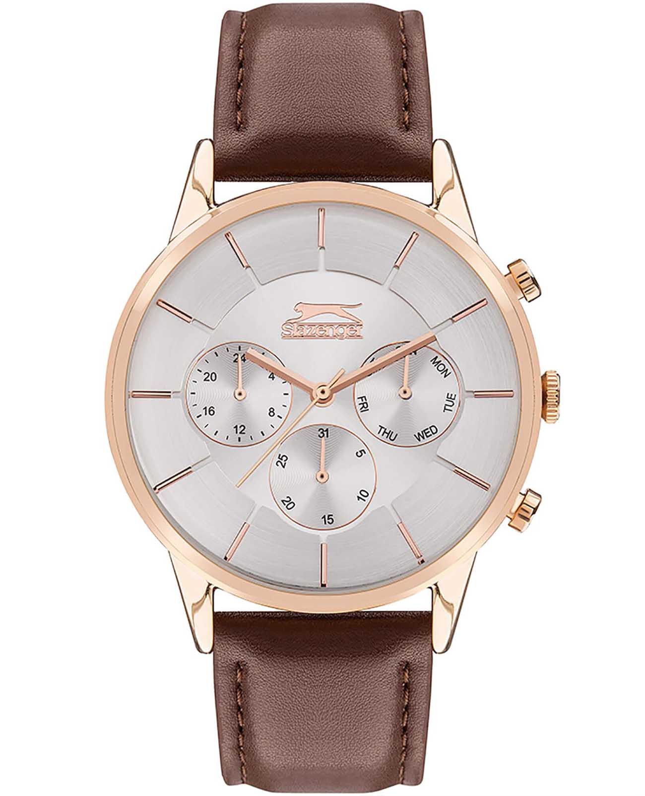 Slazenger SL.09.2020.2.03 – стильные мужские часы, сочетающие современный дизайн и функциональность. Корпус диаметром 44 мм выполнен из суперметалла с PVD-покрытиемPVDУльтратонкое покрытие наносится в технике вакуумного напыления, сочетает в себе нитрид титана особой прочности со слоем золота или оксида хрома. Несёт в себе декоративную или защитную функцию., обеспечивая прочность и долговечность. Циферблат с метками и стрелками защищён минеральным стекломМинеральное стеклоМинеральное стекло представляет собой искусственно выращенный минерал кварца. Такое стекло отличается особой устойчивостью к повреждениям и царапинам. Уступает по некоторым качествам сапфировому стеклу., устойчивым к царапинам. Часы оснащены точным кварцевым механизмом, обеспечивающим надёжное отображение времени. Дополнительные функции включают отображение даты, что повышает практичность модели. Кожаный ремешок с классической пряжкой обеспечивает комфортное ношение и надёжную фиксацию на запястье. Водозащита до 50 метров (5 ATM) позволяет использовать часы в повседневной жизни, включая кратковременное погружение в воду.