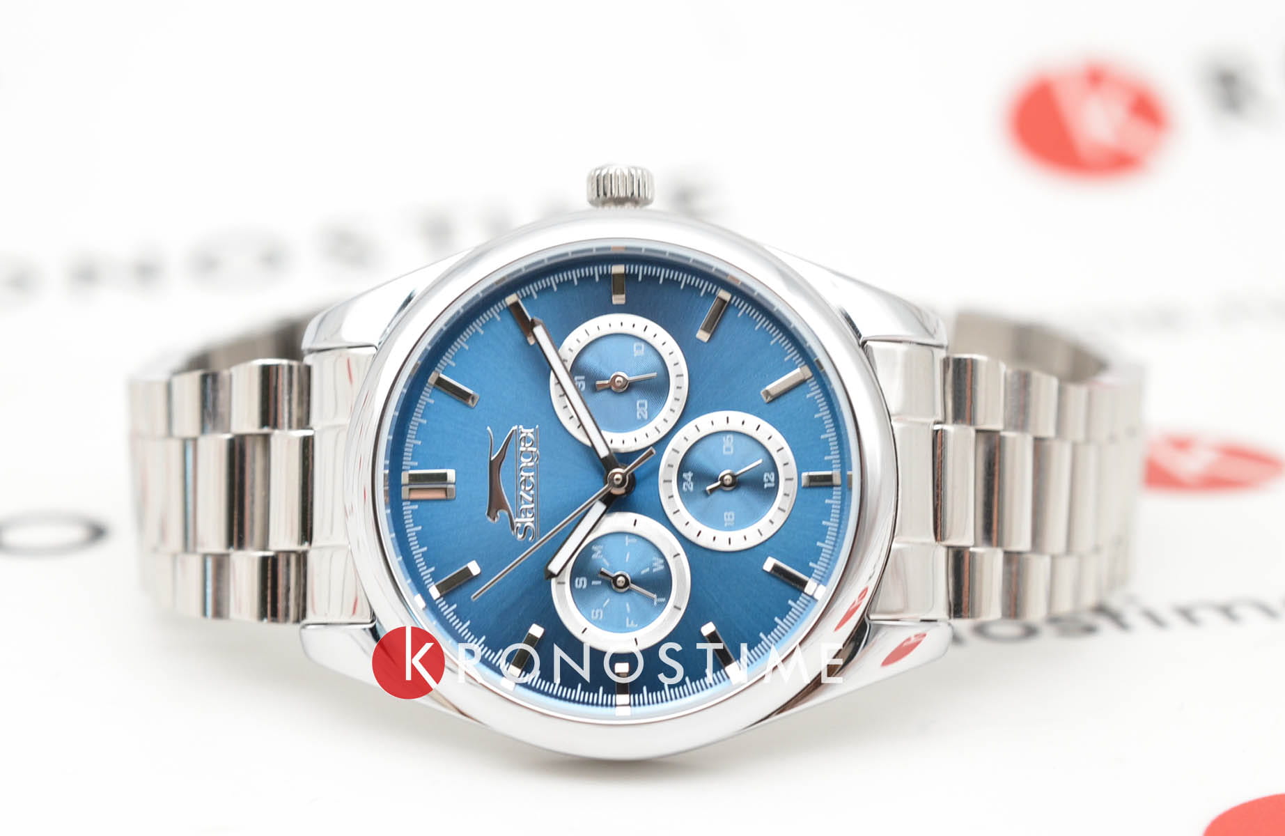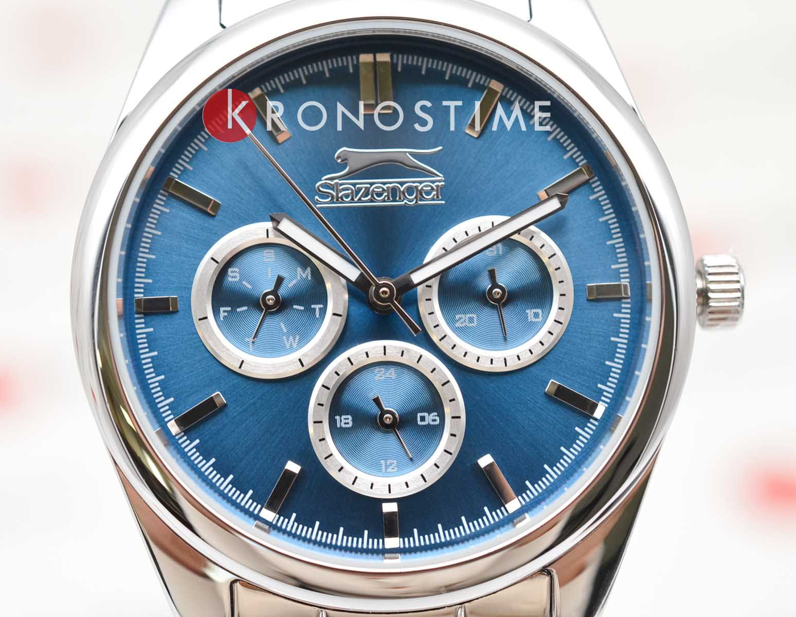 Женские наручные часы Slazenger SL.09.2063.4.06 сочетают в себе классический дизайн и высокое качество исполнения. Модель обладает круглым корпусом диаметром 36 мм, изготовленным из суперметалла, что обеспечивает устойчивость к внешним воздействиям. Браслет выполнен из суперметалла на раскладной застёжкеРаскладная застёжкаТакой тип застёжки используется только на браслетах из металла. Она никогда не раскрывается полностью, происходит разделение на 2 и более частей. Раскладывающая застёжка снизит вероятность потери часов к минимуму.. Синий циферблат украшен логотипом бренда и метками времени. Имеются дополнительные малые циферблаты для отображения даты, дня недели и текущего времени в 24-часовом формате. Для защиты используется минеральное стеклоМинеральное стеклоМинеральное стекло представляет собой искусственно выращенный минерал кварца. Такое стекло отличается особой устойчивостью к повреждениям и царапинам. Уступает по некоторым качествам сапфировому стеклу., обеспечивающее прочную защиту от царапин. Стрелки и метки имеют люминесцентное покрытиеЛюминесцентное покрытиеПозволяет считывать показания времени в темноте. Производители наносят на стрелки, часовые индексы, безель или поверхность циферблата светонакопительный состав, дающий холодное свечение., что позволяет легко читать время в темноте. Часы работают на японском кварцевом механизме, который обеспечивает точность хода без необходимости подзаводки. Водонепроницаемость часов составляет 3 атмосферы (WR30), что позволяет защитить корпус от случайных брызг или капель дождя.