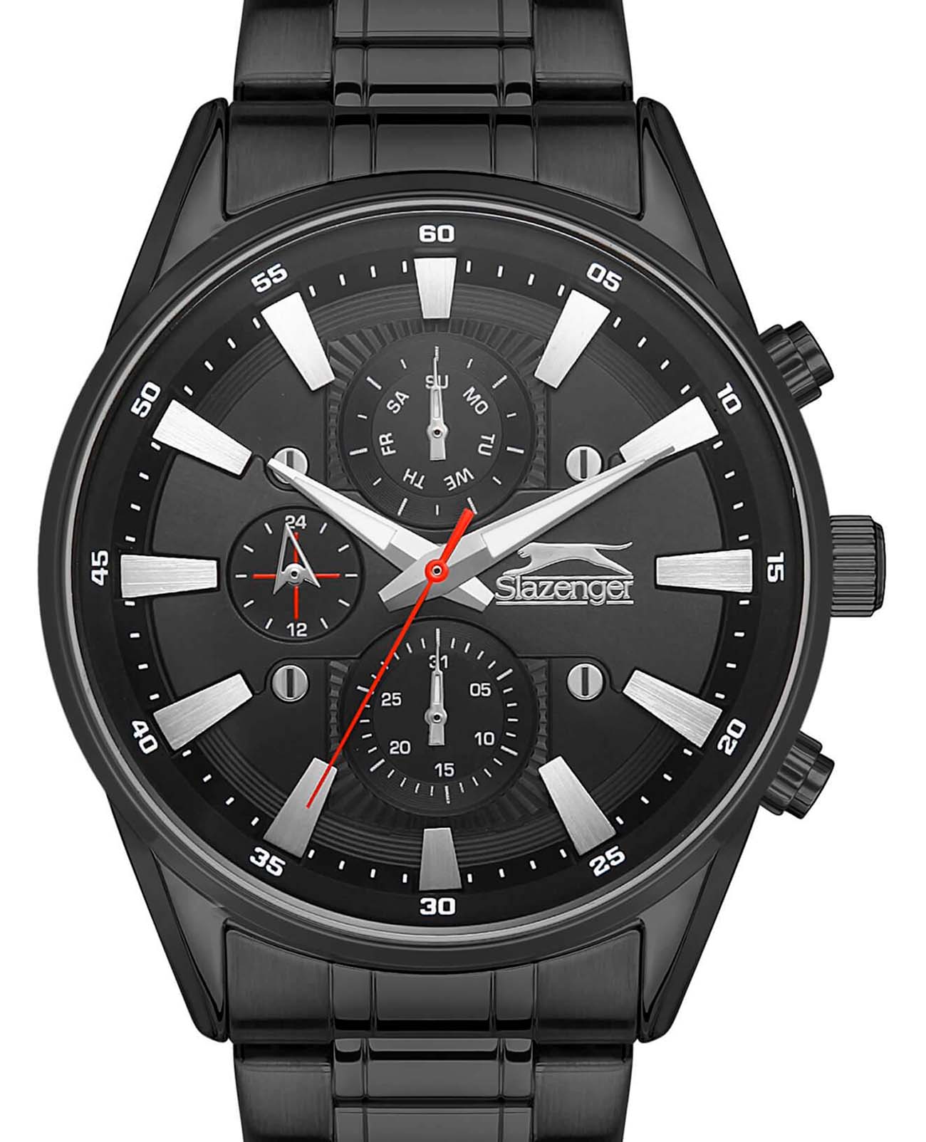 Мужские наручные часы Slazenger SL.09.2118.2.05 — это стильный и функциональный аксессуар, сочетающий в себе классический дизайн и современные технологии. Модель обладает круглым корпусом диаметром 46 мм и браслетом, выполненным из суперметалла с IP-покрытиемIP-покрытиеМетод ионного напыления. Демонстрирует повышенную устойчивость к истиранию, окислению и химическим веществам. Под воздействием высокого давления и температуры около 1500°C молекулы металла надёжно соединяются с частицами корпуса часов., что обеспечивает устойчивость к царапинам и коррозии. Браслет с раскладной застежкойРаскладная застёжкаТакой тип застёжки используется только на браслетах из металла. Она никогда не раскрывается полностью, происходит разделение на 2 и более частей. Раскладывающая застёжка снизит вероятность потери часов к минимуму. гарантирует удобство и надежность при ношении. Циферблат черного цвета украшен стрелками с люминесцентным покрытиемЛюминесцентное покрытиеПозволяет считывать показания времени в темноте. Производители наносят на стрелки, часовые индексы, безель или поверхность циферблата светонакопительный состав, дающий холодное свечение., что позволяет легко определять время даже в условиях слабого освещения. Для защиты циферблата используется минеральное стеклоМинеральное стеклоМинеральное стекло представляет собой искусственно выращенный минерал кварца. Такое стекло отличается особой устойчивостью к повреждениям и царапинам. Уступает по некоторым качествам сапфировому стеклу., устойчивое к царапинам и повреждениям. Часы оснащены кварцевым механизмом, обеспечивающим точность хода с минимальной погрешностью. Модель также включает функции отображения даты, дня недели и 24-часового формата времени, что делает ее практичной для повседневного использования. Водонепроницаемость часов составляет 50 метров (5 ATM), что позволяет использовать их при плавании, но не рекомендуется для дайвинга. Вес модели — 155 грамм, что обеспечивает комфортное ношение. Slazenger SL.09.2118.2.05 — это универсальный аксессуар, который подчеркнет стиль и практичность в любом образе мужчины.