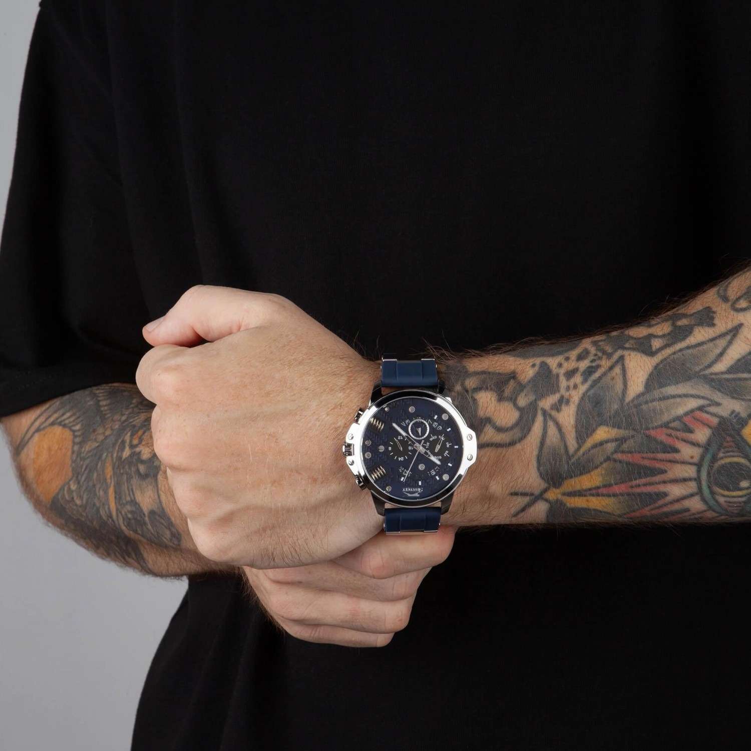 Часы Slazenger SL.09.2212.2.05 представляют собой стильный и функциональный аксессуар, созданный для современных мужчин, ценящих качество и надежность. Они оснащены кварцевым механизмом, который обеспечивает точность хода и минимальную необходимость в обслуживании. Люминесцентное покрытиеЛюминесцентное покрытиеПозволяет считывать показания времени в темноте. Производители наносят на стрелки, часовые индексы, безель или поверхность циферблата светонакопительный состав, дающий холодное свечение. на стрелках и метках обеспечивает отличную видимость в темноте. Благодаря водозащите уровня WR 50 (5 ATM), эти часы отлично справляются с воздействием влаги, что делает их подходящими для повседневного ношения и активного образа жизни. Минеральное стеклоМинеральное стеклоМинеральное стекло представляет собой искусственно выращенный минерал кварца. Такое стекло отличается особой устойчивостью к повреждениям и царапинам. Уступает по некоторым качествам сапфировому стеклу. защищает циферблат от царапин и повреждений, гарантируя долгий срок службы. Корпус часов диаметром 47 мм и толщиной 13 мм выполнен из прочного суперметалла, что придаёт им стильный и современный вид. Силиконовый синий браслет, дополненный элементами из суперметалла, обеспечивает комфорт при носке и надёжно фиксирует часы на запястье, а его размеры (22-20 мм) подходят для большинства мужчин. Часы оснащены рядом полезных функций, таких как индикация даты, дня недели и 24-часовой указатель времени, что делает их не только стильным, но и практичным аксессуаром. Вес модели составляет 110 г, что делает их лёгкими и удобными для ежедневного ношения.