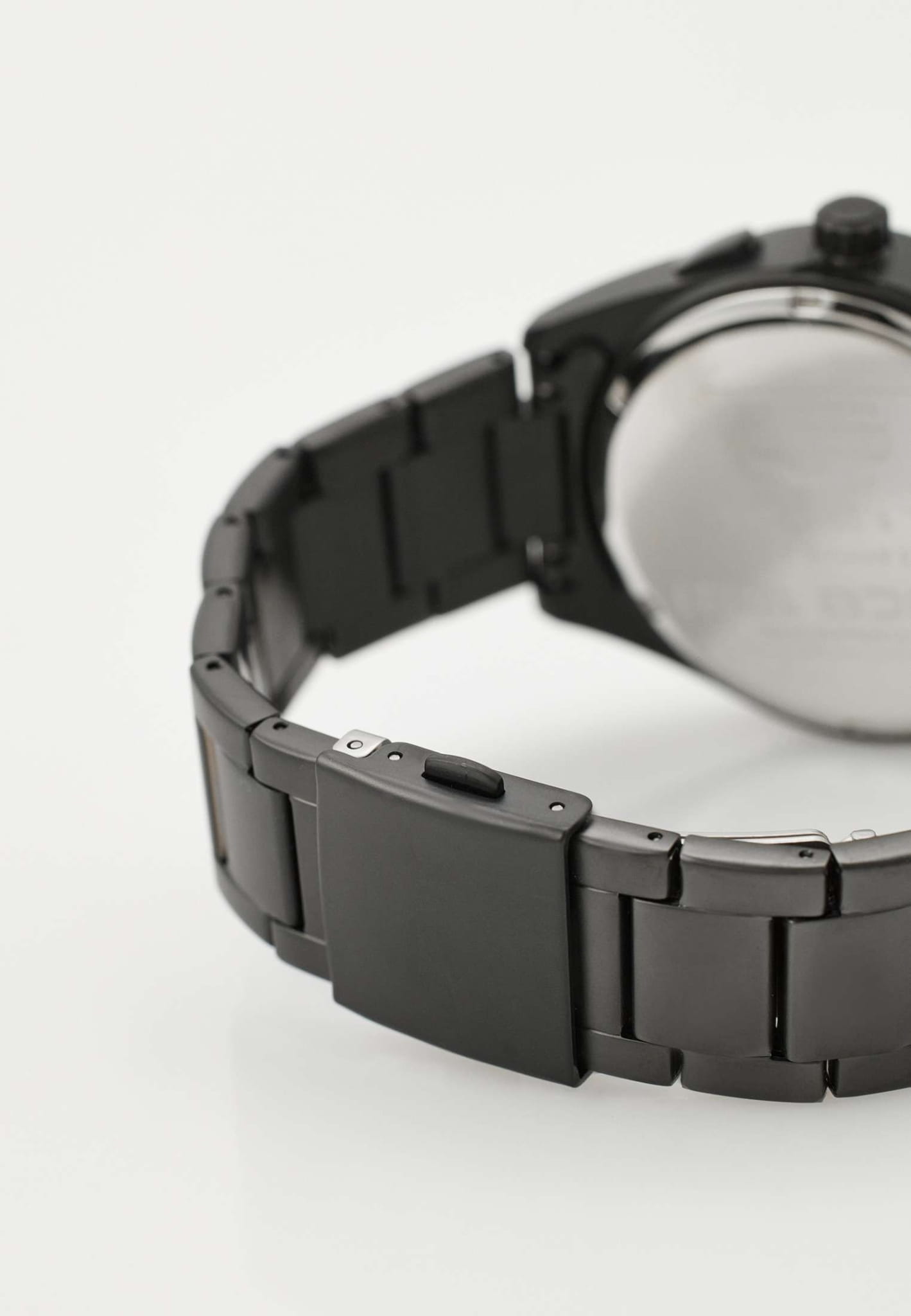 Часы Slazenger SL.09.2215.2.05 представляют собой стильные мужские наручные часы, которые сочетают в себе элегантный дизайн и функциональность. Изготовленные в Англии, эти кварцевые часы оснащены прочным металлическим корпусом и черным металлическим браслетом с раскладной застёжкойРаскладная застёжкаТакой тип застёжки используется только на браслетах из металла. Она никогда не раскрывается полностью, происходит разделение на 2 и более частей. Раскладывающая застёжка снизит вероятность потери часов к минимуму., который обеспечивает надежную фиксацию на запястье, также на них нанесено IP-покрытиеIP-покрытиеМетод ионного напыления. Демонстрирует повышенную устойчивость к истиранию, окислению и химическим веществам. Под воздействием высокого давления и температуры около 1500°C молекулы металла надёжно соединяются с частицами корпуса часов.. Минеральное стеклоМинеральное стеклоМинеральное стекло представляет собой искусственно выращенный минерал кварца. Такое стекло отличается особой устойчивостью к повреждениям и царапинам. Уступает по некоторым качествам сапфировому стеклу. защищает черный циферблат от царапин, а водозащита WR 50 позволяет использовать их в условиях повышенной влажности. Диаметр корпуса составляет 43 мм, а толщина — 14 мм, что делает часы удобными для ежедневного ношения. Ширина ремешка — 22 мм, что обеспечивает комфорт и стильный вид на руке. Дополнительные функции включают отображение второго часового поясаВторой часовой поясФункция, позволяющая отображать время двух часовых поясов одновременно., дня недели и текущего времени в 24-часовом формате, а также наличие окошка даты для удобства пользователя. Стрелки снабжены люминесцентным покрытиемЛюминесцентное покрытиеПозволяет считывать показания времени в темноте. Производители наносят на стрелки, часовые индексы, безель или поверхность циферблата светонакопительный состав, дающий холодное свечение., что позволяет легко считывать время в темноте. Часы также оснащены тахиметромТахиметрРазмеченная шкала, располагается на ободке или безеле часов. Тахиметр позволяет рассчитать скорость на определённом участке пути, расстояние измеряется в километрах или милях., что добавляет им функциональности и может быть полезно для измерения скорости.