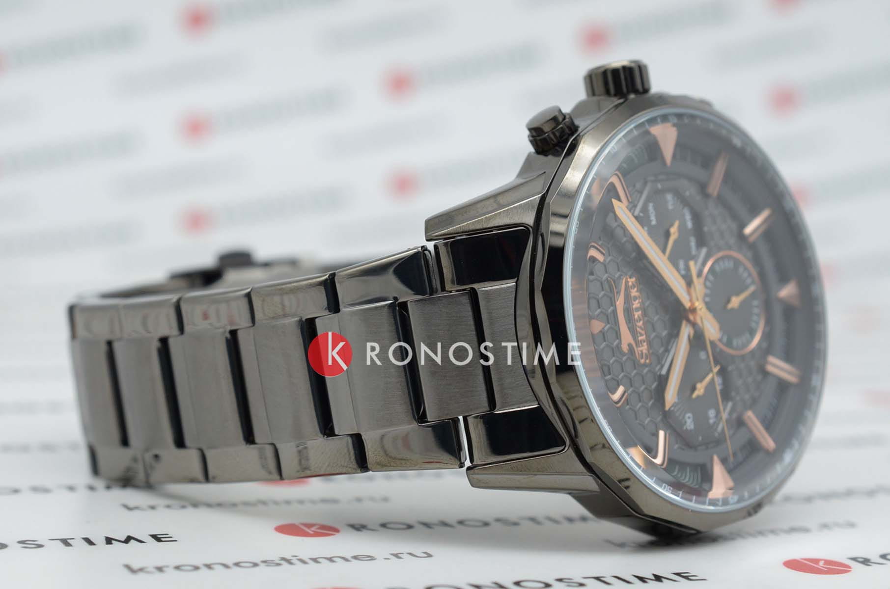 Стильные мужские наручные часы Slazenger SL.09.2216.2.02 станут идеальным аксессуаром для современного мужчины. Этот британский бренд славится своим качеством и надежностью, а данная модель не является исключением. Часы оснащены кварцевым механизмом, что обеспечивает точность хода и долговечность использования. Корпус часов выполнен из металла с черным IP-покрытиемIP-покрытиеМетод ионного напыления. Демонстрирует повышенную устойчивость к истиранию, окислению и химическим веществам. Под воздействием высокого давления и температуры около 1500°C молекулы металла надёжно соединяются с частицами корпуса часов., а прочное  минеральное стеклоМинеральное стеклоМинеральное стекло представляет собой искусственно выращенный минерал кварца. Такое стекло отличается особой устойчивостью к повреждениям и царапинам. Уступает по некоторым качествам сапфировому стеклу. защищает циферблат от царапин и повреждений. Элегантный металлический браслет черного цвета снабжен удобной раскладной застёжкойРаскладная застёжкаТакой тип застёжки используется только на браслетах из металла. Она никогда не раскрывается полностью, происходит разделение на 2 и более частей. Раскладывающая застёжка снизит вероятность потери часов к минимуму., что гарантирует комфортное ношение на запястье. Ширина браслета составляет 22 мм, что придает часам солидный вид. Диаметр корпуса равен 45 мм, а толщина 12 мм, что делает эту модель заметной, но в то же время не громоздкой. Водозащита уровня WR 50 позволяет использовать часы в повседневной жизни, не беспокоясь о случайных попаданиях воды. Стрелки снабжены люминесцентным покрытиемЛюминесцентное покрытиеПозволяет считывать показания времени в темноте. Производители наносят на стрелки, часовые индексы, безель или поверхность циферблата светонакопительный состав, дающий холодное свечение., что позволяет легко считывать время в темноте. Функциональные возможности часов включают отображение даты, дня недели и времени в 24-часовом формате на дополнительных малых циферблатах. Это делает модель не только стильной, но и практичной в использовании.