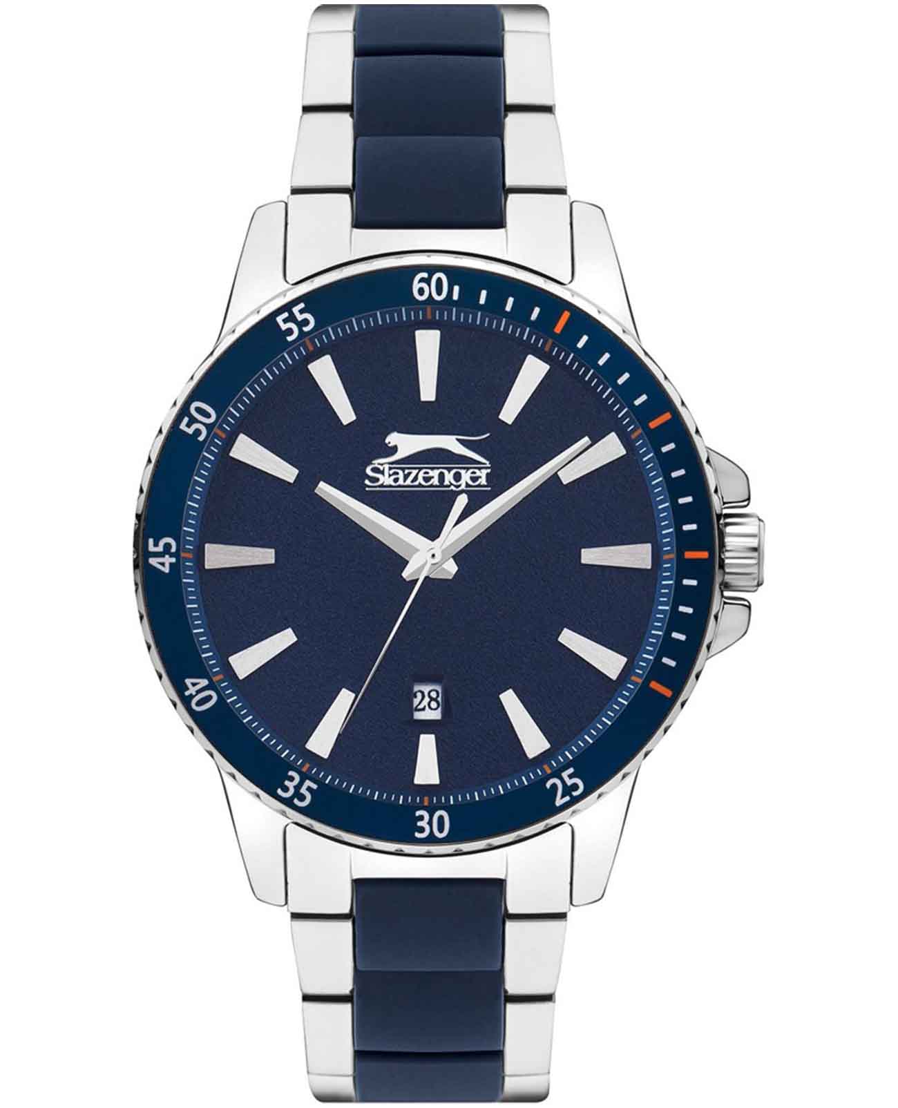 Часы Slazenger SL.09.2219.1.05 представляют собой стильное и функциональное аксессуарное решение для современных мужчин. Этот английский бренд предлагает кварцевый механизм, обеспечивающий точность хода и надежность в использовании. Корпус из металла и минеральное стеклоМинеральное стеклоМинеральное стекло представляет собой искусственно выращенный минерал кварца. Такое стекло отличается особой устойчивостью к повреждениям и царапинам. Уступает по некоторым качествам сапфировому стеклу. придают часам прочность и износостойкость, а водозащита уровня WR 30 позволяет не беспокоиться о случайных брызгах и дождевых каплях. БезельБезельВнешний ободок, закрепляющий стекло. В спортивных часах так называется поворотное кольцо с делениями на циферблате, выполняет роль таймера – замеряет отрезки времени на шкале. Неподвижный безель – элемент декора. Однонаправленно вращающийся безель на дайверских часах позволяет фиксировать моменты погружения и выныривания на поверхность. с синим IP-покрытиемIP-покрытиеМетод ионного напыления. Демонстрирует повышенную устойчивость к истиранию, окислению и химическим веществам. Под воздействием высокого давления и температуры около 1500°C молекулы металла надёжно соединяются с частицами корпуса часов. придаёт аксессуару современный вид и дополнительную прочность. Металлический браслет с комбинированными элементами и синими силиконовыми вставками обеспечивает комфортное ношение и надежную фиксацию на запястье, а раскладная застёжкаРаскладная застёжкаТакой тип застёжки используется только на браслетах из металла. Она никогда не раскрывается полностью, происходит разделение на 2 и более частей. Раскладывающая застёжка снизит вероятность потери часов к минимуму. облегчает процесс надевания. Диаметр корпуса составляет 45 мм, а толщина — 12 мм, что делает модель выразительной и заметной на руке, при этом она сохраняет элегантность и изысканность. На синем циферблате присутствует окошко даты, что добавляет практичности в повседневное использование. Заводная головка оснащена защитой, обеспечивая дополнительную долговечность. Вес часов составляет 148 грамм, что делает их достаточно легкими для комфортного ношения в течение всего дня.