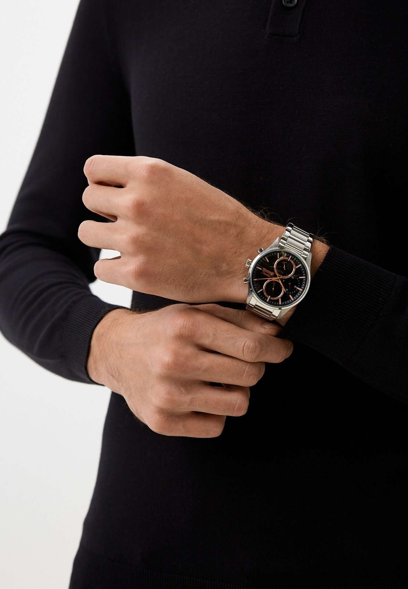 Часы Slazenger SL.09.2283.2.02 — это стильный и надежный аксессуар, который подчеркивает индивидуальность своего владельца. Корпус и браслет выполнены из прочного суперметалла — инновационного сплава на основе меди с пониженным содержанием цинка и никеля, дополненного специальным покрытием для долговечности и эстетики. Черный циферблат надежно защищен минеральным стекломМинеральное стеклоМинеральное стекло представляет собой искусственно выращенный минерал кварца. Такое стекло отличается особой устойчивостью к повреждениям и царапинам. Уступает по некоторым качествам сапфировому стеклу., устойчивым к царапинам и механическим повреждениям. Модель оснащена кварцевым механизмом, что гарантирует высокую точность хода. На отдельные циферблаты вынесены указатели 24-часового времени, даты и дня недели, что делает использование часов особенно удобным в повседневной жизни. Стальной браслет с раскладной застёжкойРаскладная застёжкаТакой тип застёжки используется только на браслетах из металла. Она никогда не раскрывается полностью, происходит разделение на 2 и более частей. Раскладывающая застёжка снизит вероятность потери часов к минимуму. обеспечивает комфортную посадку. Водозащита 5 АТМ позволяет не беспокоиться о случайных брызгах или дожде. Метки с люминесцентным покрытиемЛюминесцентное покрытиеПозволяет считывать показания времени в темноте. Производители наносят на стрелки, часовые индексы, безель или поверхность циферблата светонакопительный состав, дающий холодное свечение. удобно подсвечиваются в темноте после зарядки на свету. Диаметр корпуса составляет 43 мм, толщина — 13 мм, что обеспечивает комфортное ношение на запястье. Часы станут отличным выбором для повседневного использования или дополнения к деловому образу, а также послужат отличным подарком на любой праздник.