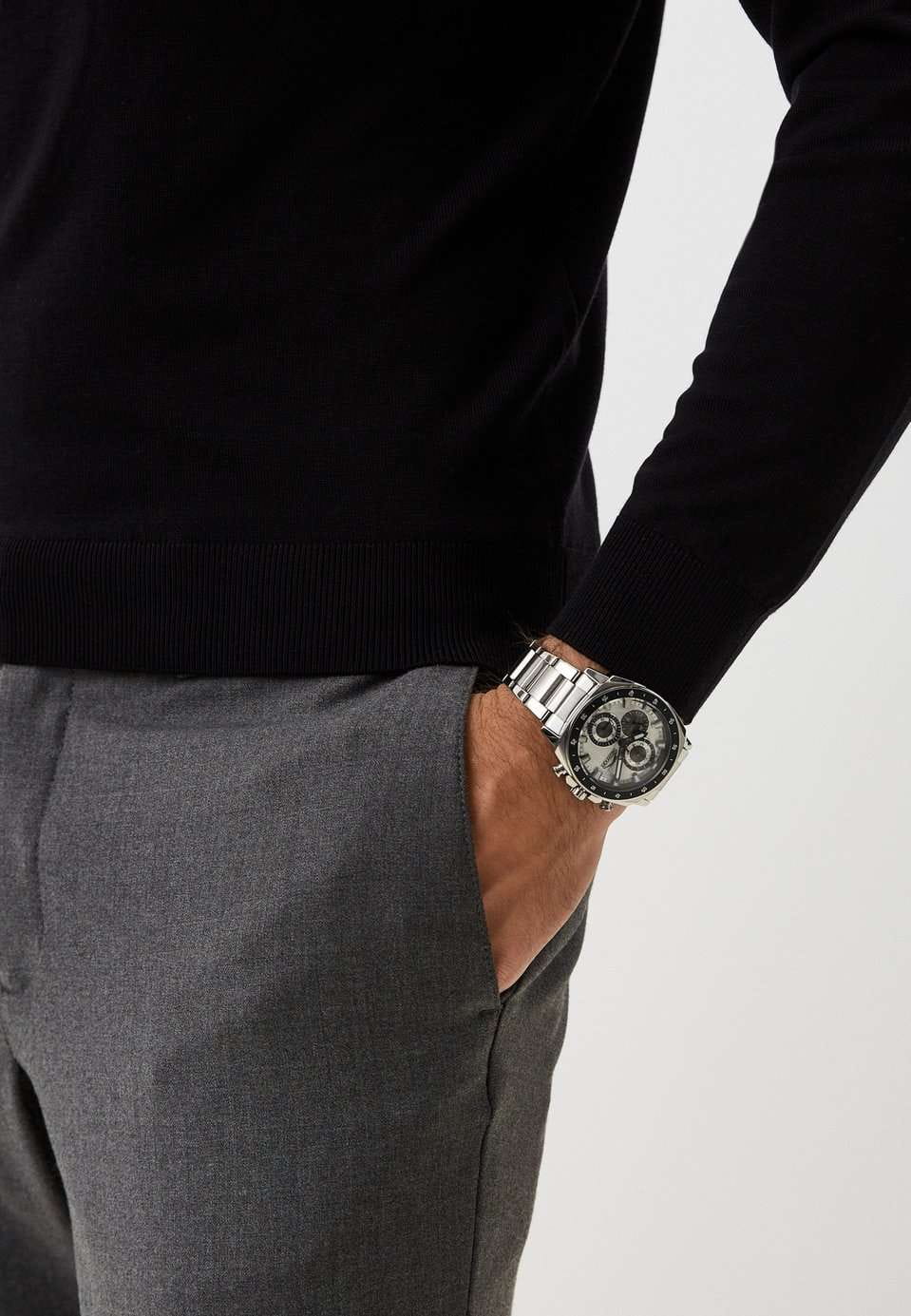 Slazenger SL.09.2292.2.05 — это стильные наручные часы, выполненные в современном дизайне и отлично подходящие для повседневного использования. Корпус диаметром 45 мм изготовлен из прочного металла и дополнен минеральным стекломМинеральное стеклоМинеральное стекло представляет собой искусственно выращенный минерал кварца. Такое стекло отличается особой устойчивостью к повреждениям и царапинам. Уступает по некоторым качествам сапфировому стеклу., которое защищает серебристый циферблат. Серебристый металлический браслет шириной 24 мм оснащён надежной раскладной застёжкойРаскладная застёжкаТакой тип застёжки используется только на браслетах из металла. Она никогда не раскрывается полностью, происходит разделение на 2 и более частей. Раскладывающая застёжка снизит вероятность потери часов к минимуму., которая обеспечивает комфортную посадку на руке. Кварцевый механизм гарантирует точный ход, а водозащита уровня WR 50 позволяет не снимать часы во время мытья рук или под дождём. Модель оснащена люминесцентным покрытиемЛюминесцентное покрытиеПозволяет считывать показания времени в темноте. Производители наносят на стрелки, часовые индексы, безель или поверхность циферблата светонакопительный состав, дающий холодное свечение. стрелок и меток, что облегчает считывание времени в темноте. Дополнительные малые циферблаты отображают дату, день недели и текущее время в 24-часовом формате. Часы также оснащены заводной головкой с защитой и безелемБезельВнешний ободок, закрепляющий стекло. В спортивных часах так называется поворотное кольцо с делениями на циферблате, выполняет роль таймера – замеряет отрезки времени на шкале. Неподвижный безель – элемент декора. Однонаправленно вращающийся безель на дайверских часах позволяет фиксировать моменты погружения и выныривания на поверхность. с черным IP-покрытиемIP-покрытиеМетод ионного напыления. Демонстрирует повышенную устойчивость к истиранию, окислению и химическим веществам. Под воздействием высокого давления и температуры около 1500°C молекулы металла надёжно соединяются с частицами корпуса часов. и секундной разметкой. Вес изделия составляет 173 грамма.
