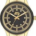 Женские наручные часы Slazenger SL.09.2295.3.03 — это элегантный аксессуар, который подчеркнет утончённый стиль своей обладательницы. Корпус диаметром 36 мм и толщиной 11,5 мм выполнен из прочного металла с золотистым IP-покрытиемIP-покрытиеМетод ионного напыления. Демонстрирует повышенную устойчивость к истиранию, окислению и химическим веществам. Под воздействием высокого давления и температуры около 1500°C молекулы металла надёжно соединяются с частицами корпуса часов. и надёжно защищён минеральным стекломМинеральное стеклоМинеральное стекло представляет собой искусственно выращенный минерал кварца. Такое стекло отличается особой устойчивостью к повреждениям и царапинам. Уступает по некоторым качествам сапфировому стеклу., устойчивым к царапинам. Черный циферблат украшен изящными кристаллами, придающими часам особый блеск и изысканность. Модель оснащена люминесцентным покрытиемЛюминесцентное покрытиеПозволяет считывать показания времени в темноте. Производители наносят на стрелки, часовые индексы, безель или поверхность циферблата светонакопительный состав, дающий холодное свечение. стрелок, что облегчает считывание времени в темноте. Особое внимание привлекает безельБезельВнешний ободок, закрепляющий стекло. В спортивных часах так называется поворотное кольцо с делениями на циферблате, выполняет роль таймера – замеряет отрезки времени на шкале. Неподвижный безель – элемент декора. Однонаправленно вращающийся безель на дайверских часах позволяет фиксировать моменты погружения и выныривания на поверхность. с черным IP-покрытиемIP-покрытиеМетод ионного напыления. Демонстрирует повышенную устойчивость к истиранию, окислению и химическим веществам. Под воздействием высокого давления и температуры около 1500°C молекулы металла надёжно соединяются с частицами корпуса часов.. Металлический браслет с золотистым IP-покрытиемIP-покрытиеМетод ионного напыления. Демонстрирует повышенную устойчивость к истиранию, окислению и химическим веществам. Под воздействием высокого давления и температуры около 1500°C молекулы металла надёжно соединяются с частицами корпуса часов. шириной 16 мм оснащён удобной раскладной застёжкойРаскладная застёжкаТакой тип застёжки используется только на браслетах из металла. Она никогда не раскрывается полностью, происходит разделение на 2 и более частей. Раскладывающая застёжка снизит вероятность потери часов к минимуму. для комфортной посадки на запястье. Кварцевый механизм обеспечивает точность хода, а водозащита уровня WR 30 защищает часы от случайных брызг. Для удобства в условиях плохой освещённости предусмотрена подсветка стрелок. Вес изделия составляет 95 граммов.