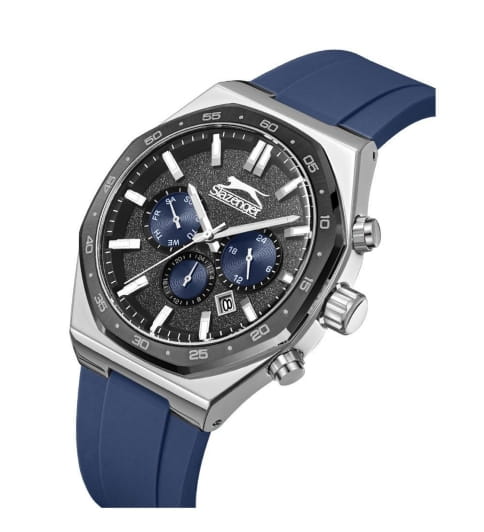 Мужские элегантные наручные часы Slazenger SL.09.2341.2.03 сочетают в себе современный стиль и функциональность. Стильный корпус выполнен из нержавеющей стали с неповоротный безелемБезельВнешний ободок, закрепляющий стекло. В спортивных часах так называется поворотное кольцо с делениями на циферблате, выполняет роль таймера – замеряет отрезки времени на шкале. Неподвижный безель – элемент декора. Однонаправленно вращающийся безель на дайверских часах позволяет фиксировать моменты погружения и выныривания на поверхность. с IP-покрытиемIP-покрытиеМетод ионного напыления. Демонстрирует повышенную устойчивость к истиранию, окислению и химическим веществам. Под воздействием высокого давления и температуры около 1500°C молекулы металла надёжно соединяются с частицами корпуса часов., придающий модели дополнительную прочность и элегантный внешний вид. Изысканный циферблат защищён минеральным стекломМинеральное стеклоМинеральное стекло представляет собой искусственно выращенный минерал кварца. Такое стекло отличается особой устойчивостью к повреждениям и царапинам. Уступает по некоторым качествам сапфировому стеклу., устойчивым к царапинам и повреждениям, и дополнен вынесенными малыми циферблатами для индикации дня недели и времени в 24-часовом формате. Водонепроницаемость 5 АТМ позволяет использовать часы в повседневных условиях — при мытье рук или под лёгким дождём. Ремень из силикона со стандартной застежкой, обеспечивающий надёжную фиксацию и комфорт при ношении. Окошко даты находится в положении между 4 и 5 часами. Cтрелки и метки покрыты люминесцентным покрытиемЛюминесцентное покрытиеПозволяет считывать показания времени в темноте. Производители наносят на стрелки, часовые индексы, безель или поверхность циферблата светонакопительный состав, дающий холодное свечение. для читаемости в условиях недостаточного освещения. Эта модель идеально подходит для мужчин, ценящих стиль, функциональность и надёжность в одном аксессуаре.