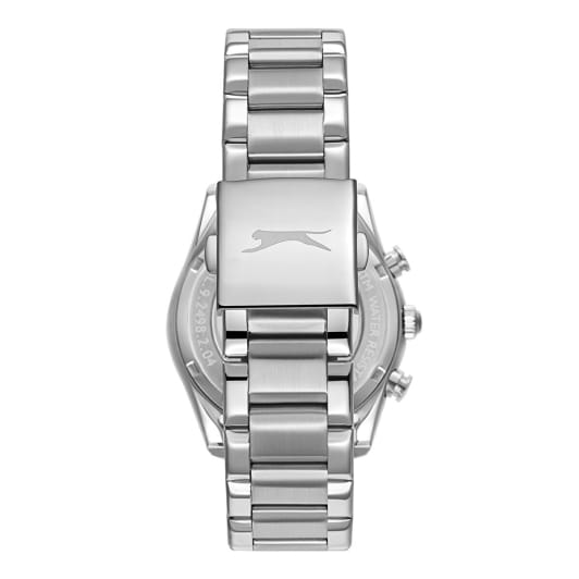Мужские кварцевые часы Slazenger — это выразительный и функциональный аксессуар. Корпус диаметром 43 мм и толщиной 12 мм выполнен из нержавеющей стали 316L. Циферблат серебристого цвета оформлен индексами и стрелками с люминесцентным покрытиемЛюминесцентное покрытиеПозволяет считывать показания времени в темноте. Производители наносят на стрелки, часовые индексы, безель или поверхность циферблата светонакопительный состав, дающий холодное свечение., обеспечивающим хорошую читаемость в темноте. БезельБезельВнешний ободок, закрепляющий стекло. В спортивных часах так называется поворотное кольцо с делениями на циферблате, выполняет роль таймера – замеряет отрезки времени на шкале. Неподвижный безель – элемент декора. Однонаправленно вращающийся безель на дайверских часах позволяет фиксировать моменты погружения и выныривания на поверхность. из нержавеющей стали с PVD-покрытиемPVDУльтратонкое покрытие наносится в технике вакуумного напыления, сочетает в себе нитрид титана особой прочности со слоем золота или оксида хрома. Несёт в себе декоративную или защитную функцию.. Циферблат защищён минеральным стекломМинеральное стеклоМинеральное стекло представляет собой искусственно выращенный минерал кварца. Такое стекло отличается особой устойчивостью к повреждениям и царапинам. Уступает по некоторым качествам сапфировому стеклу.. Механизм — кварцевый калибр JP25. Часы оснащены индикацией дня недели, даты, 12/24-часового формата времени и функцией второго часового пояса (GMT)Второй часовой поясФункция, позволяющая отображать время двух часовых поясов одновременно.. Окошко даты расположено между 4 и 5 часами. Часы оснащены стальным браслетом из нержавеющей стали 316L с раскладной застёжкойРаскладная застёжкаТакой тип застёжки используется только на браслетах из металла. Она никогда не раскрывается полностью, происходит разделение на 2 и более частей. Раскладывающая застёжка снизит вероятность потери часов к минимуму.. Водонепроницаемость 100 м позволяет использовать часы для плавания и повседневного ношения. Гарантия — 12 месяцев. Идеальный выбор для тех, кто ценит стиль, функциональность и качество.