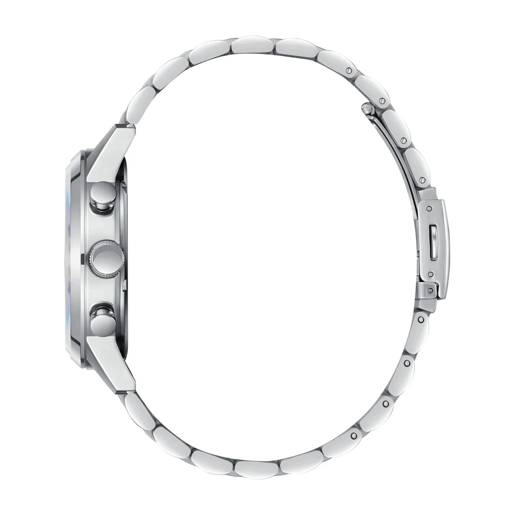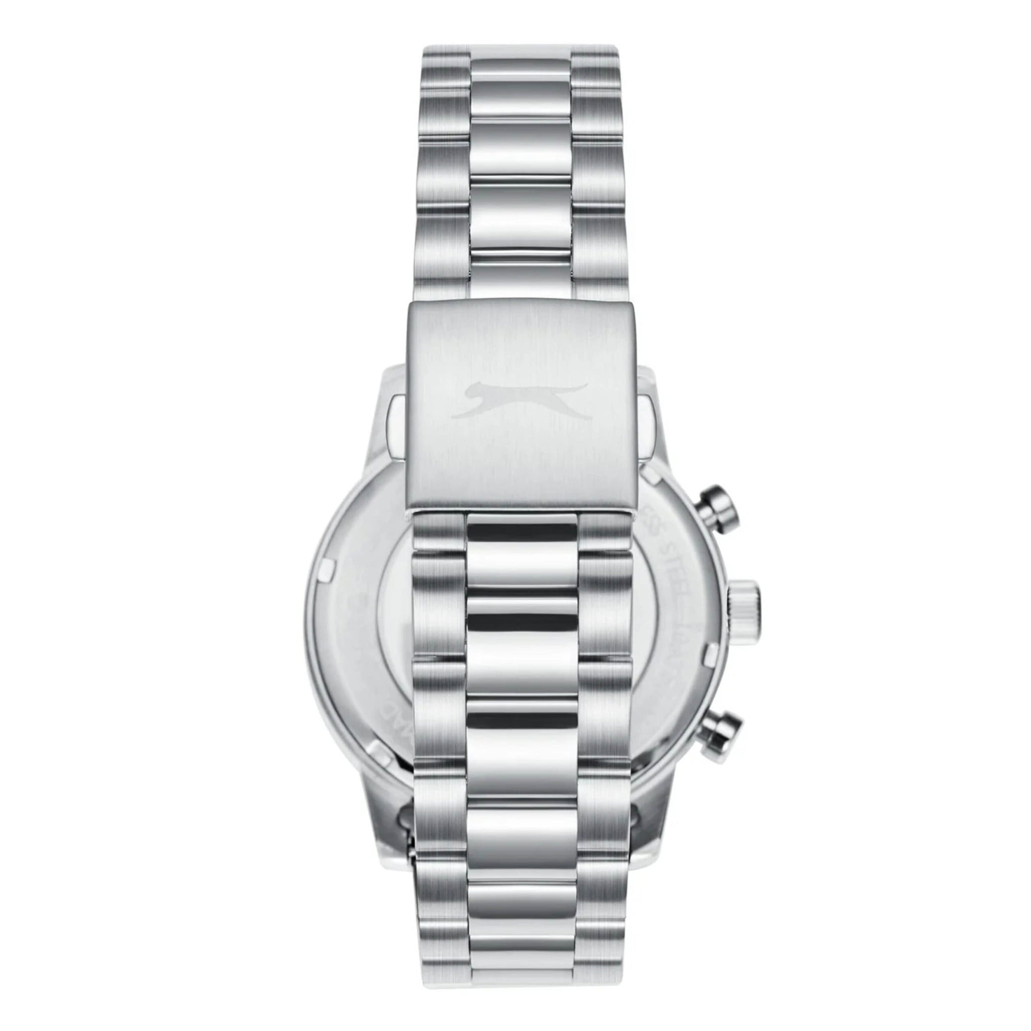 Мужские кварцевые часы Slazenger — это выразительный и функциональный аксессуар. Корпус диаметром 42 мм и толщиной 12 мм выполнен из нержавеющей стали 316L. Циферблат зелёного цвета оформлен индексами и стрелками. Окошко даты расположено на отметке в 6 часов. Указатель дня недели и 24-часовой формат времени вынесены на отдельные субциферблаты. Циферблат защищён минеральным стекломМинеральное стеклоМинеральное стекло представляет собой искусственно выращенный минерал кварца. Такое стекло отличается особой устойчивостью к повреждениям и царапинам. Уступает по некоторым качествам сапфировому стеклу.. Механизм — кварцевый калибр JP25. Часы оснащены функцией второго часового пояса (GMT)Второй часовой поясФункция, позволяющая отображать время двух часовых поясов одновременно.. Стрелки и метки с люминесцентным покрытиемЛюминесцентное покрытиеПозволяет считывать показания времени в темноте. Производители наносят на стрелки, часовые индексы, безель или поверхность циферблата светонакопительный состав, дающий холодное свечение., обеспечивающим хорошую читаемость в темноте. Часы оснащены стальным браслетом с раскладной застёжкойРаскладная застёжкаТакой тип застёжки используется только на браслетах из металла. Она никогда не раскрывается полностью, происходит разделение на 2 и более частей. Раскладывающая застёжка снизит вероятность потери часов к минимуму.. Водонепроницаемость 100 м позволяет использовать часы для плавания и повседневного ношения. Гарантия — 12 месяцев. Идеальный выбор для тех, кто ценит стиль, функциональность и качество.