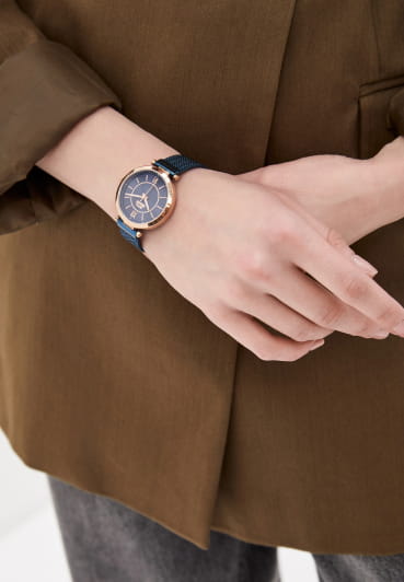 Женские кварцевые часы Slazenger — это элегантный аксессуар, который станет отличным дополнением к стилю. Корпус диаметром 34 мм и толщиной 8 мм выполнен из суперметалла с IP-покрытиемIP-покрытиеМетод ионного напыления. Демонстрирует повышенную устойчивость к истиранию, окислению и химическим веществам. Под воздействием высокого давления и температуры около 1500°C молекулы металла надёжно соединяются с частицами корпуса часов.. Циферблат синего цвета оформлен индексами и стрелками. Циферблат защищён минеральным стекломМинеральное стеклоМинеральное стекло представляет собой искусственно выращенный минерал кварца. Такое стекло отличается особой устойчивостью к повреждениям и царапинам. Уступает по некоторым качествам сапфировому стеклу.. Механизм — кварцевый калибр Miyota 2035. Часы оснащены браслетом из суперметалла миланского плетения с раскладной застёжкойРаскладная застёжкаТакой тип застёжки используется только на браслетах из металла. Она никогда не раскрывается полностью, происходит разделение на 2 и более частей. Раскладывающая застёжка снизит вероятность потери часов к минимуму.. Водонепроницаемость 30 м позволяет использовать часы в повседневных условиях. Идеальный выбор для тех, кто ценит стиль и качество.