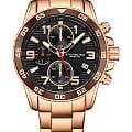 Stuhrling 3957.4 — мощные мужские часы с выразительным спортивным характером и динамичным дизайном. Корпус из нержавеющей стали с PVD-покрытиемPVDУльтратонкое покрытие наносится в технике вакуумного напыления, сочетает в себе нитрид титана особой прочности со слоем золота или оксида хрома. Несёт в себе декоративную или защитную функцию. гармонично сочетается с циферблатом, оформленным рельефным узором и контрастными счётчиками хронографаХронографФункция позволяет измерять отрезки времени с особой точностью: часы, минуты, секунды. Верным признаком хронографа является наличие на циферблате 3 дополнительных окошек-счётчиков.. Широкий безельБезельВнешний ободок, закрепляющий стекло. В спортивных часах так называется поворотное кольцо с делениями на циферблате, выполняет роль таймера – замеряет отрезки времени на шкале. Неподвижный безель – элемент декора. Однонаправленно вращающийся безель на дайверских часах позволяет фиксировать моменты погружения и выныривания на поверхность. с PVD-покрытиемPVDУльтратонкое покрытие наносится в технике вакуумного напыления, сочетает в себе нитрид титана особой прочности со слоем золота или оксида хрома. Несёт в себе декоративную или защитную функцию. подчёркивает брутальный стиль модели, а стрелки и метки с люминесцентным покрытиемЛюминесцентное покрытиеПозволяет считывать показания времени в темноте. Производители наносят на стрелки, часовые индексы, безель или поверхность циферблата светонакопительный состав, дающий холодное свечение. обеспечивают идеальную читаемость в любых условиях. Прочное стекло KrysternaKrysternaKrysterna — инновационное стекло для наручных часов. Благодаря уникальной структуре, Krysterna объединяет ключевые преимущества двух материалов: твердость сапфира, защищающую от царапин, и гибкость минерального стекла, обеспечивающую устойчивость к деформациям. Такая комбинация делает его идеальным решением для часов, подверженных экстремальным нагрузкам, сохраняя при этом оптическую прозрачность. устойчиво к царапинам, сохраняя прозрачность и блеск. Завершает образ стальной браслет с PVD-покрытиемPVDУльтратонкое покрытие наносится в технике вакуумного напыления, сочетает в себе нитрид титана особой прочности со слоем золота или оксида хрома. Несёт в себе декоративную или защитную функцию. и раскладной застёжкойРаскладная застёжкаТакой тип застёжки используется только на браслетах из металла. Она никогда не раскрывается полностью, происходит разделение на 2 и более частей. Раскладывающая застёжка снизит вероятность потери часов к минимуму., гарантирующий комфорт и надёжную фиксацию. Stuhrling — стильная и функциональная модель для уверенных мужчин, ценящих точность и энергию в каждой детали.