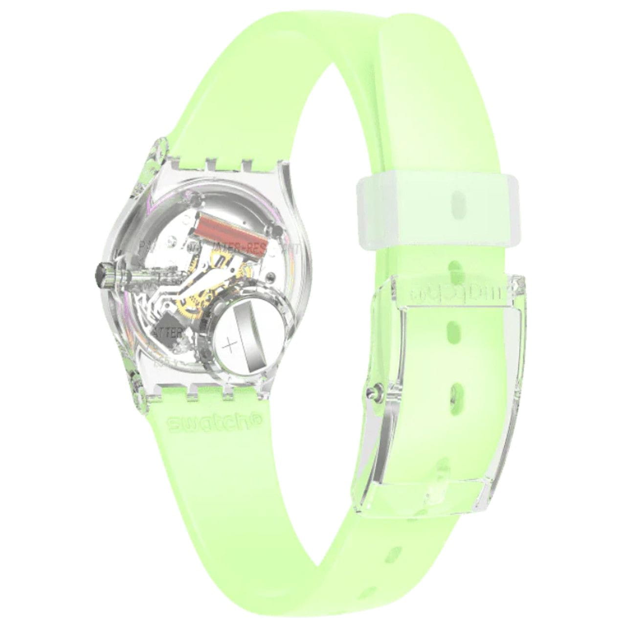 Наручные часы Swatch LK397. Эти современные и легкие женские часы относятся к коллекции Lady. С водозащитой до 30 метров они надежно защищают корпус от случайных брызг и капель дождя. Хезалитовое стекло, используемое в этих часах, обладает высокой прочностью и трудно разбивается; это легкий прозрачный пластик, который может прогибаться при ударах и не разлетается на осколки. Кроме того, хезалит устойчив к перепадам температуры и высокому давлению. Корпус часов выполнен из полимера, а механизм — кварцевый. Кварцевые часы обеспечивают большую точность по сравнению с механическими, с погрешностью хода около 20 секунд в месяц. Они не требуют завода, достаточно менять батарейку раз в несколько лет.