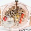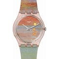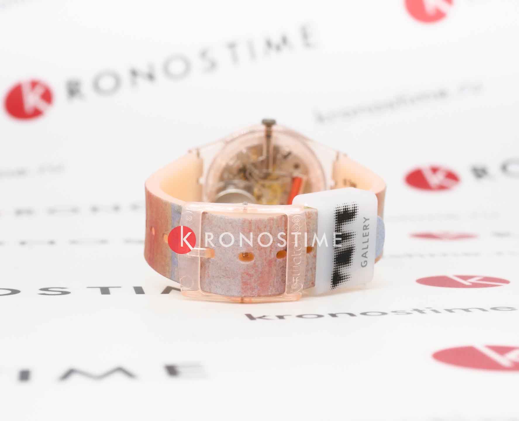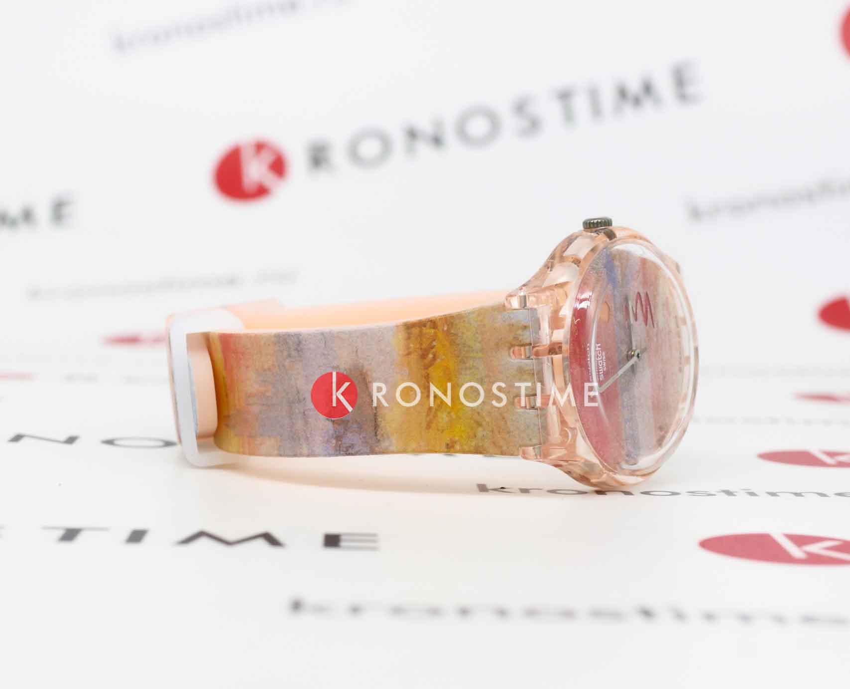Часы Swatch SO28Z700  —  эффектный и надежный аксессуар. Эти часы из коллекции Swatch x Tate Gallery обладают прозрачным глянцево-розовым корпусом и стеклом из биоматериала. Циферблат и матово-розовый ремешок украшены принтом с репродукцией картины Тёрнера (JMW Turner) «Алый закат» («The Scarlet Sunset»). Время отсчитывают серебристые стрелки с люминесцентным покрытиемЛюминесцентное покрытиеПозволяет считывать показания времени в темноте. Производители наносят на стрелки, часовые индексы, безель или поверхность циферблата светонакопительный состав, дающий холодное свечение., которые светятся в темноте, а солнце на циферблате меняет цвет в течение дня благодаря разноцветному календарному колесу. На прозрачном матовом ремешке расположен логотип Tate Gallery. Ремешок из силикона на стандартной застёжке. Внутри часов установлен надежный кварцевый механизм, который обеспечивает точность хода. Эти часы водонепроницаемы до 30 метров, что позволяет не беспокоиться о случайных брызгах или дождевых каплях. Swatch SO28Z700  — это идеальный выбор для тех, кто ценит сочетание стиля, комфорта и функциональности в одном аксессуаре.