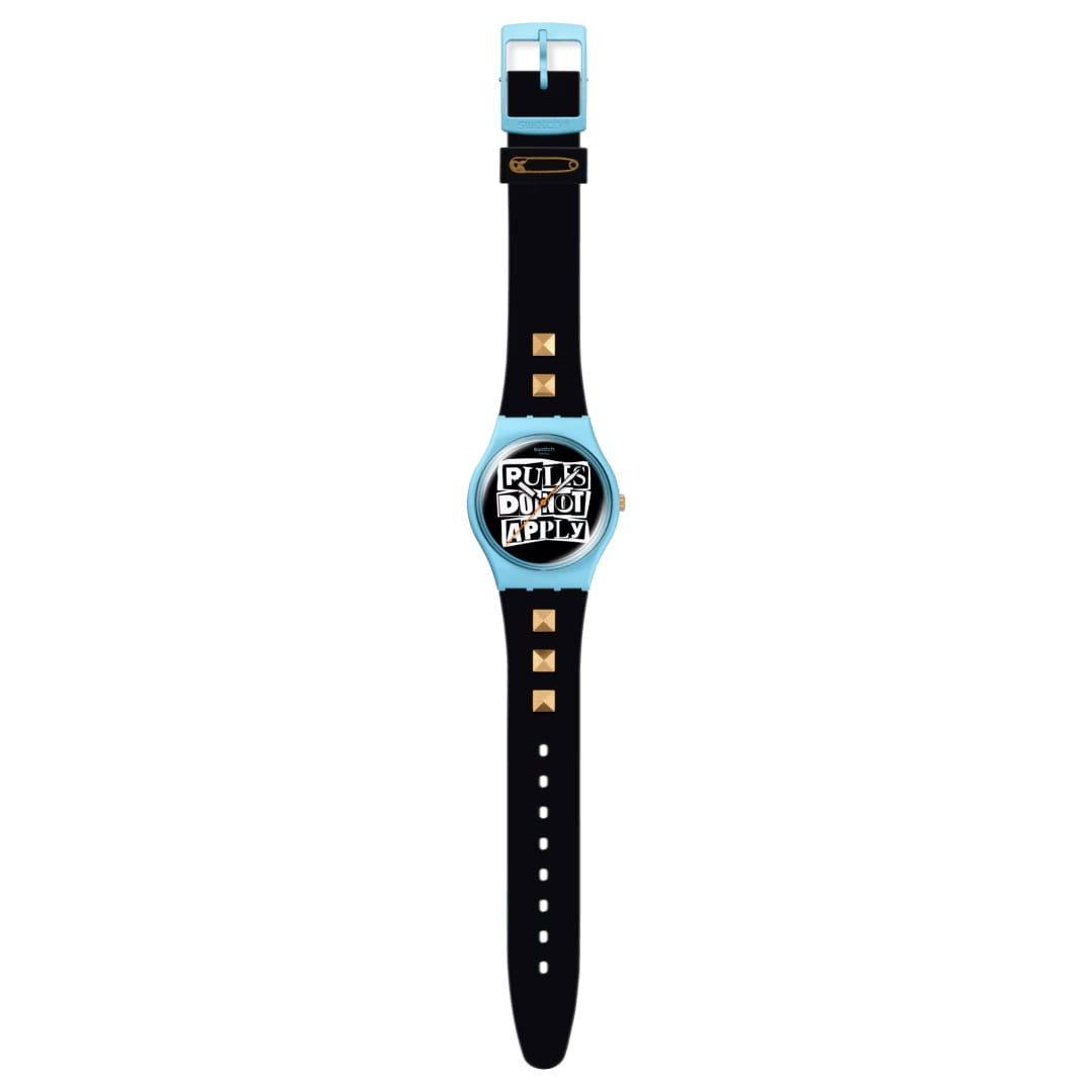 Мужские наручные часы Swatch BROKEN RULES SO31L101 — это стильный и современный аксессуар для тех, кто ценит лёгкость и комфорт. На черном циферблате этих часов размещен броский белый принт с надписью: «Rules do not apply» («Правила ни к чему»). Корпус выполнен из биокерамики, диаметром 34 мм и толщиной 8.75 мм, что обеспечивает долговечность и утончённый внешний вид. Циферблат защищён органическим стеклом, устойчивым к повреждениям. Модель оснащена кварцевым механизмом, обеспечивающим высокую точность хода. Стрелки с люминесцентным покрытиемЛюминесцентное покрытиеПозволяет считывать показания времени в темноте. Производители наносят на стрелки, часовые индексы, безель или поверхность циферблата светонакопительный состав, дающий холодное свечение.. Силиконовый ремешок на стандартной застёжке гармонично дополняет корпус и обеспечивает комфортное ношение. Водозащита 30 метров позволит защитить корпус от случайных брызг или капель дождя. Эти часы подойдут для повседневного ношения и станут ярким акцентом в вашем наряде.