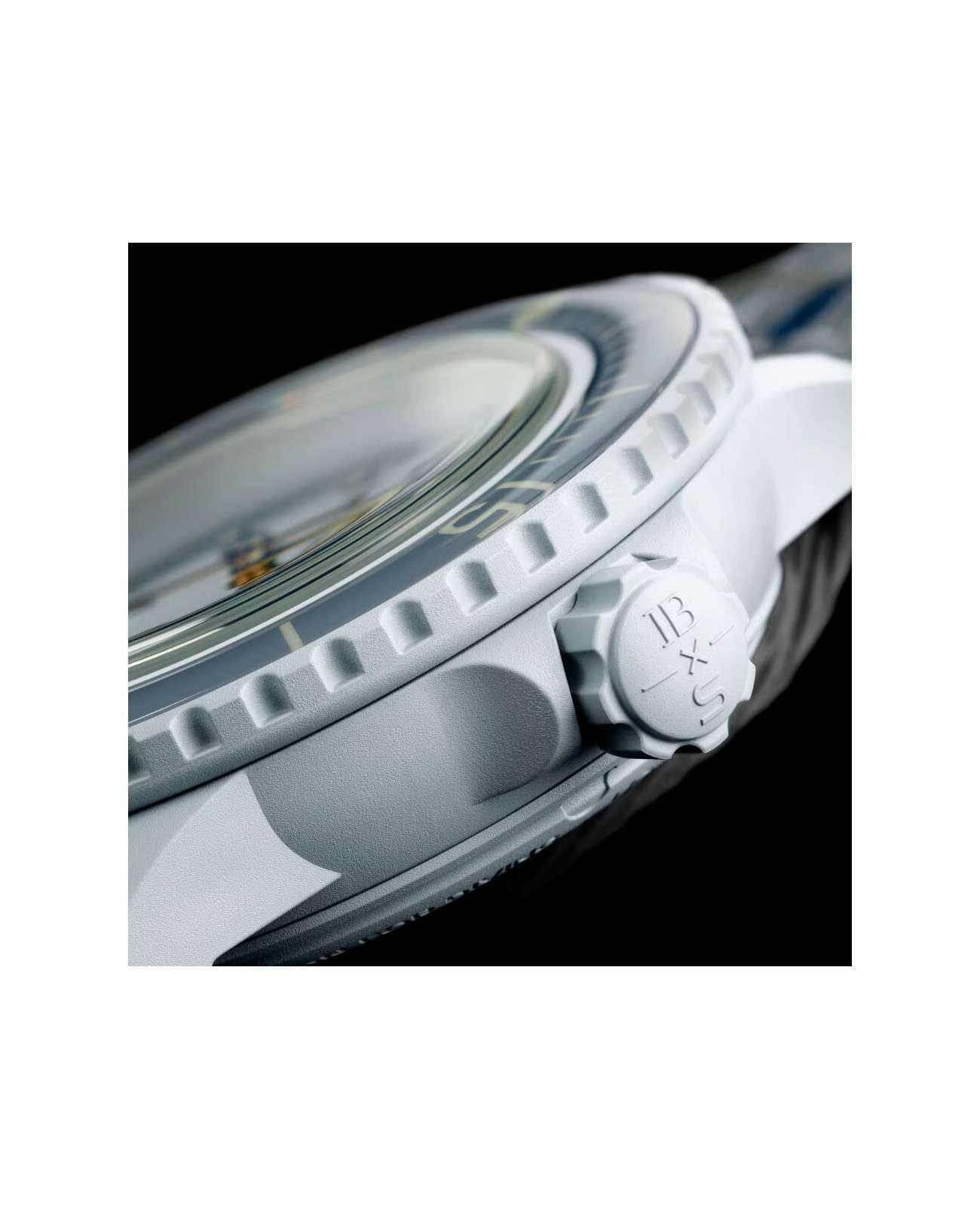 Наручные часы сочетают в себе современный дизайн и инновационные технологии. Модель обладает круглым корпусом диаметром 42,3 мм, изготовленным из биокерамикиБиокерамикаБиокерамика — это материал, который на две трети состоит из керамики, на одну треть — из биопластика. Он сочетает в себе лучшие качества обоих материалов и обладает прочностью и шелковистой на ощупь текстурой., что обеспечивает высокую прочность и устойчивость к внешним воздействиям . Толщина корпуса составляет 14,4 мм, а расстояние между ушками — 48,0 мм, что делает часы удобными для повседневного использования. Ремешок выполнен из ткани в стиле ремешка NATOРемешок NATOРемешок NATO — это прочный, универсальный и сменный часовой ремешок, изначально созданный для военных. Он изготовлен из нейлона или другого прочного материала и имеет уникальную конструкцию, которая позволяет часам оставаться на запястье даже в случае поломки одной из прикрепляющих точек. , гарантируя комфортное ношение и долговечность . Серый циферблат дополнен люминесцентными метками и арабскими цифрами, что обеспечивает четкость считывания времени в любых условиях . Для защиты используется органическое стекло, обеспечивающее надежную защиту от царапин и механических повреждений . Часы работают на автоматическом механизме Sistem51, что гарантирует точность хода без необходимости регулярной подзаводки . Водонепроницаемость часов достигает 100 метров, что позволяет использовать их в повседневных условиях, однако не рекомендуется погружение на большую глубину . Дополнительные элементы дизайна, такие как заводная головка и кнопки-пушеры, выполненные из биокерамикиБиокерамикаБиокерамика — это материал, который на две трети состоит из керамики, на одну треть — из биопластика. Он сочетает в себе лучшие качества обоих материалов и обладает прочностью и шелковистой на ощупь текстурой., завершают образ этих стильных и функциональных часов.