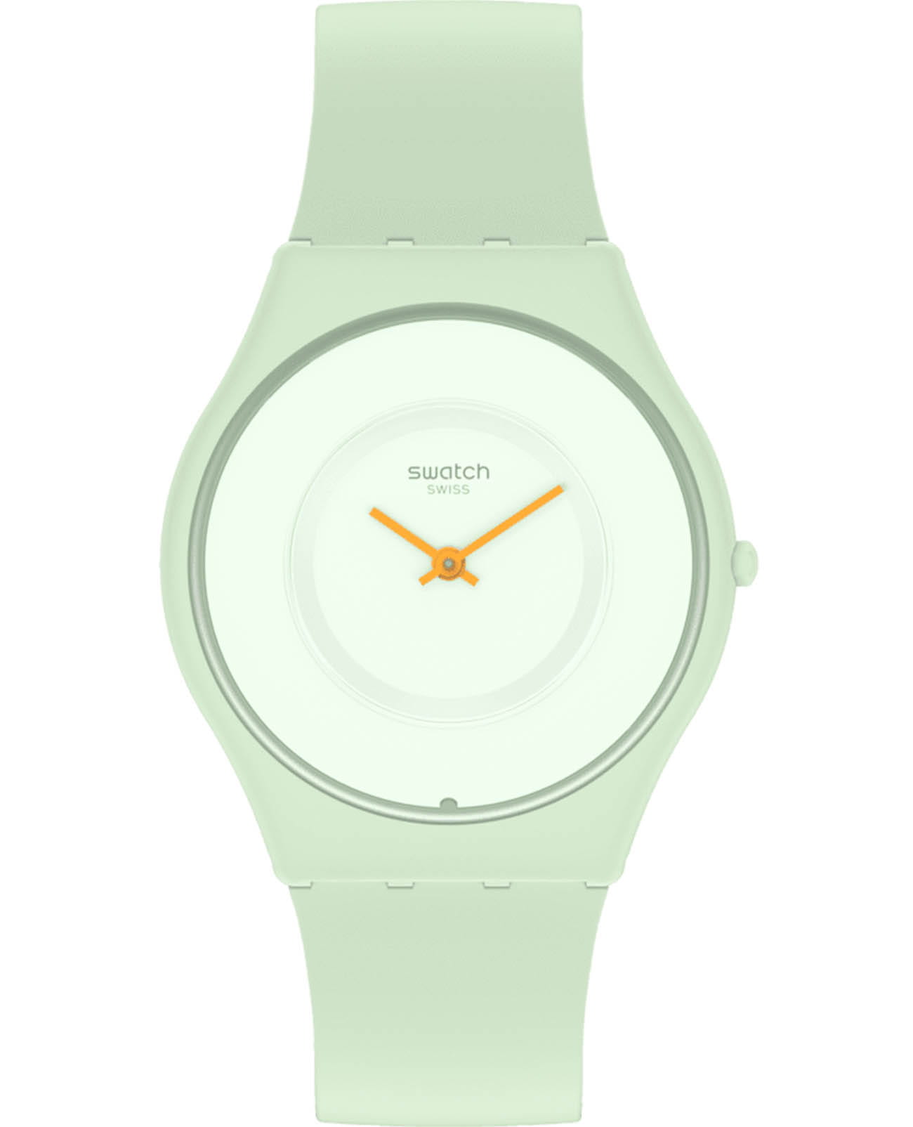 Часы Swatch SS09G101 — это стильный и современный аксессуар для тех, кто ценит лёгкость и комфорт. Часы идеально подойдут как для мужчин, так и для женщин. Зеленый принт на циферблате и биостекло — вот особенность этих тонких часов. Однотонный матово-зеленый корпус из биокерамикиБиокерамикаБиокерамика — это материал, который на две трети состоит из керамики, на одну треть — из биопластика. Он сочетает в себе лучшие качества обоих материалов и обладает прочностью и шелковистой на ощупь текстурой. дополнен матово-зеленым ремешком из биоматериала и пластиковой пряжкой. Водозащита 30 метров делает часы практичными для повседневного использования. Эти часы подойдут для повседневного ношения и станут ярким акцентом в вашем наряде.