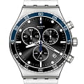 Часы Swatch YVS507G — это стильный и современный аксессуар для тех, кто ценит лёгкость и комфорт. Эта стильная модель часов из нержавеющей стали дополнена полированным металлическим браслетом из нержавеющей стали со съемными звеньями и застёжкой «бабочка»Застёжка "бабочка"Такой вид застёжки дополняется предохранителями, помогающими избежать случайного раскрытия браслета. Обладают изящным исполнением. . Черный циферблат с радиальной полировкой оснащен хронографомХронографФункция позволяет измерять отрезки времени с особой точностью: часы, минуты, секунды. Верным признаком хронографа является наличие на циферблате 3 дополнительных окошек-счётчиков. и светящимися в темноте индексами и стрелками из-за люминесцентного покрытияЛюминесцентное покрытиеПозволяет считывать показания времени в темноте. Производители наносят на стрелки, часовые индексы, безель или поверхность циферблата светонакопительный состав, дающий холодное свечение. заключен в матовый корпус из нержавеющей стали. Завершают образ индикатор даты в положении «4:30» на циферблате, а также серебристые цифры и индексы на синем безелеБезельВнешний ободок, закрепляющий стекло. В спортивных часах так называется поворотное кольцо с делениями на циферблате, выполняет роль таймера – замеряет отрезки времени на шкале. Неподвижный безель – элемент декора. Однонаправленно вращающийся безель на дайверских часах позволяет фиксировать моменты погружения и выныривания на поверхность. из нержавеющей стали с PVDPVDУльтратонкое покрытие наносится в технике вакуумного напыления, сочетает в себе нитрид титана особой прочности со слоем золота или оксида хрома. Несёт в себе декоративную или защитную функцию. покрытием. Водозащита 30 метров делает часы практичными для повседневного использования. Эти часы подойдут для повседневного ношения и станут ярким акцентом в вашем наряде.