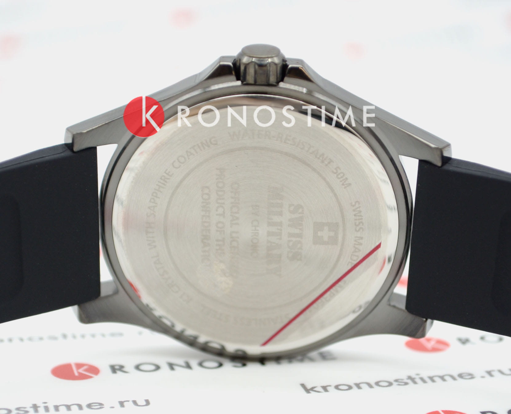 Мужские швейцарские наручные часы с минеральным стекломМинеральное стеклоМинеральное стекло представляет собой искусственно выращенный минерал кварца. Такое стекло отличается особой устойчивостью к повреждениям и царапинам. Уступает по некоторым качествам сапфировому стеклу. Swiss Military by Chrono Day Date SMP36040.20, кварцевый механизм с высокой точностью. Класс водозащиты: 50 метров, позволит защитить корпус от случайных брызг или капель дождя. Корпус часов изготовлен из стали нержавеющей с PVDPVDУльтратонкое покрытие наносится в технике вакуумного напыления, сочетает в себе нитрид титана особой прочности со слоем золота или оксида хрома. Несёт в себе декоративную или защитную функцию. покрытием. Стрелки и метки с люминесцентной подсветкойЛюминесцентное покрытиеПозволяет считывать показания времени в темноте. Производители наносят на стрелки, часовые индексы, безель или поверхность циферблата светонакопительный состав, дающий холодное свечение.. Каучуковый ремешок на стандартной застежке.