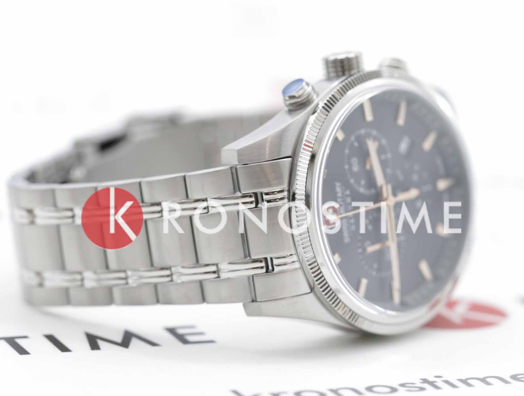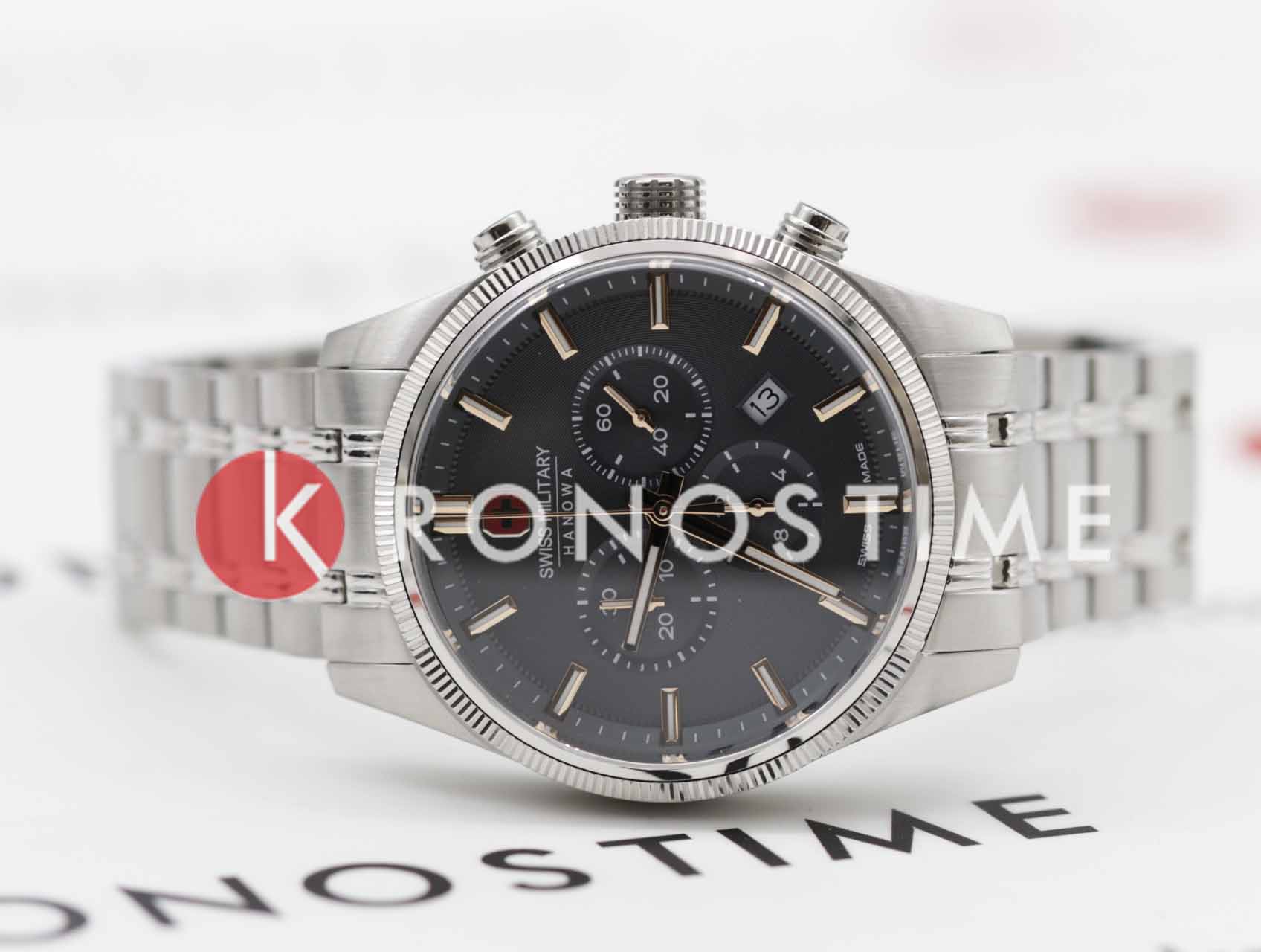 Мужские швейцарские часы-хронографХронографФункция позволяет измерять отрезки времени с особой точностью: часы, минуты, секунды. Верным признаком хронографа является наличие на циферблате 3 дополнительных окошек-счётчиков. Swiss Military Hanowa SMWGI0003103, кварцевый механизм с высокой точностью. Сапфировое стеклоСапфировое стеклоПрочный и надёжный материал из кристалла сапфира синтетического происхождения, характеризующийся особой твёрдостью и устойчивостью к царапинам и повреждениям. устойчивое к появлению царапин, обладающее высокой прозрачностью. Окошко даты находится в положении между 4 и 5 часами. Класс водозащиты: 100 метров, позволит плавать, нырять и заниматься другими водными видами спорта. Корпус часов изготовлен из стали. Стальной браслет на раскладной застёжкеРаскладная застёжкаТакой тип застёжки используется только на браслетах из металла. Она никогда не раскрывается полностью, происходит разделение на 2 и более частей. Раскладывающая застёжка снизит вероятность потери часов к минимуму.. Стрелки и метки с люминесцентным покрытиемЛюминесцентное покрытиеПозволяет считывать показания времени в темноте. Производители наносят на стрелки, часовые индексы, безель или поверхность циферблата светонакопительный состав, дающий холодное свечение..