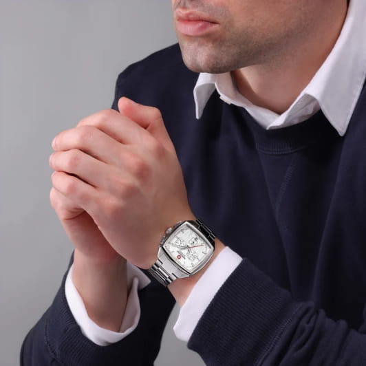 Водозащита до 100 метров (10 ATM) делает их подходящими для плавания и других водных видов спорта. Браслет из нержавеющей стали с раскладной застёжкойРаскладная застёжкаТакой тип застёжки используется только на браслетах из металла. Она никогда не раскрывается полностью, происходит разделение на 2 и более частей. Раскладывающая застёжка снизит вероятность потери часов к минимуму. обеспечивает комфортное ношение и надёжную фиксацию.